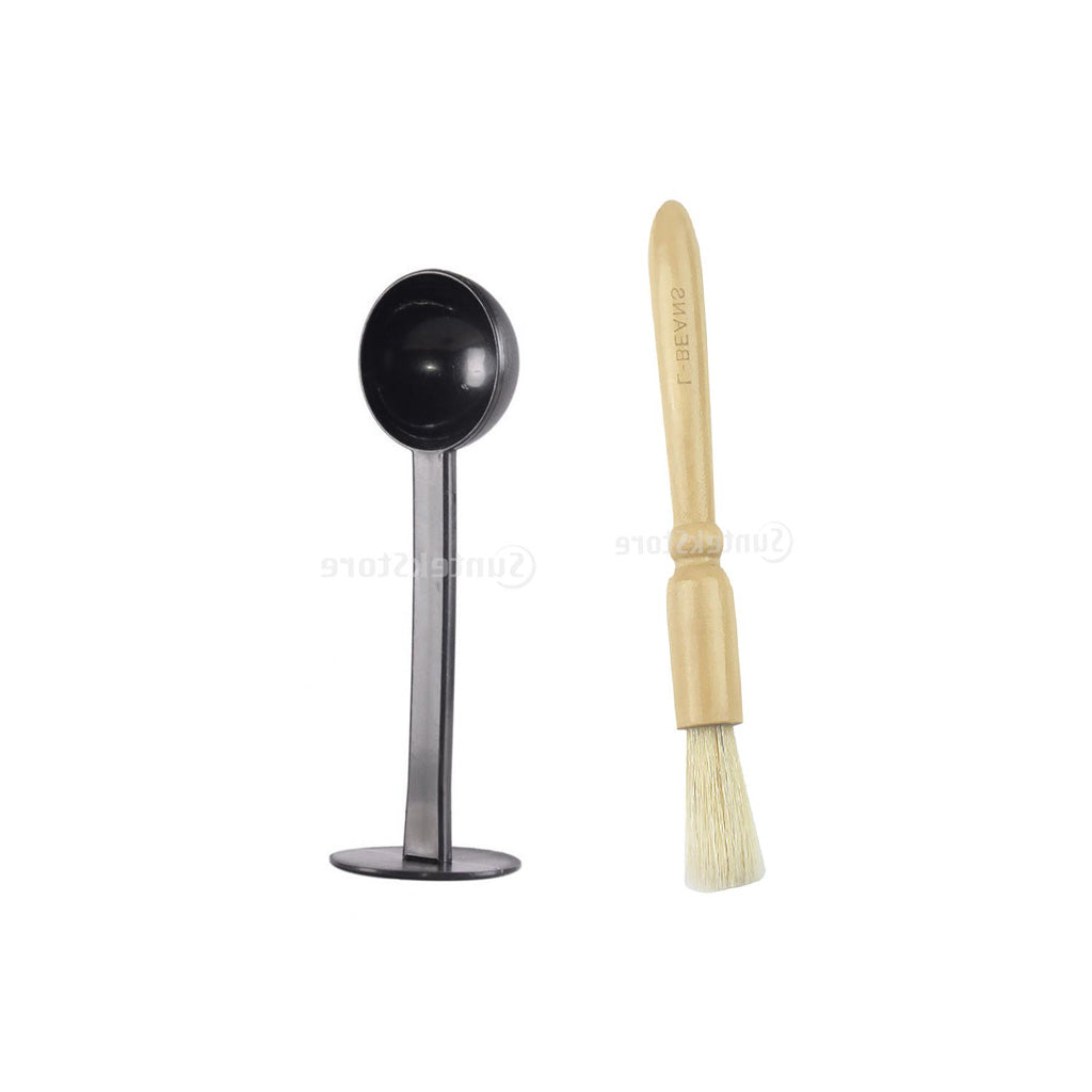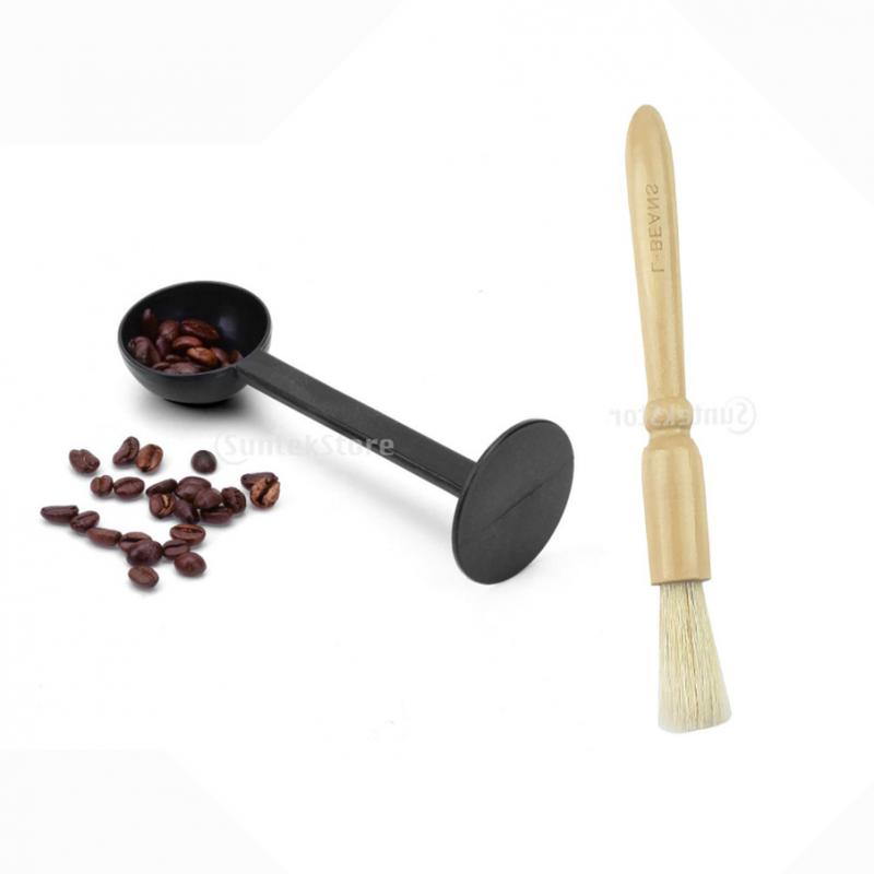 Cleaning Brush for Coffee Grinder Coffeemaker Coffeepot Dusting & 2 in1 Coffee Espresso Scoop 10g Plastic Measuring Spoon Tamper Length 150mm