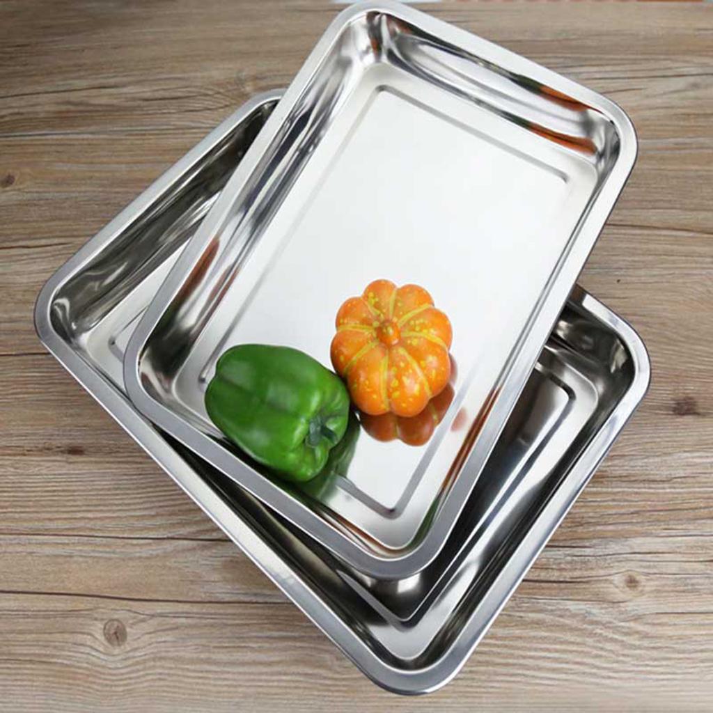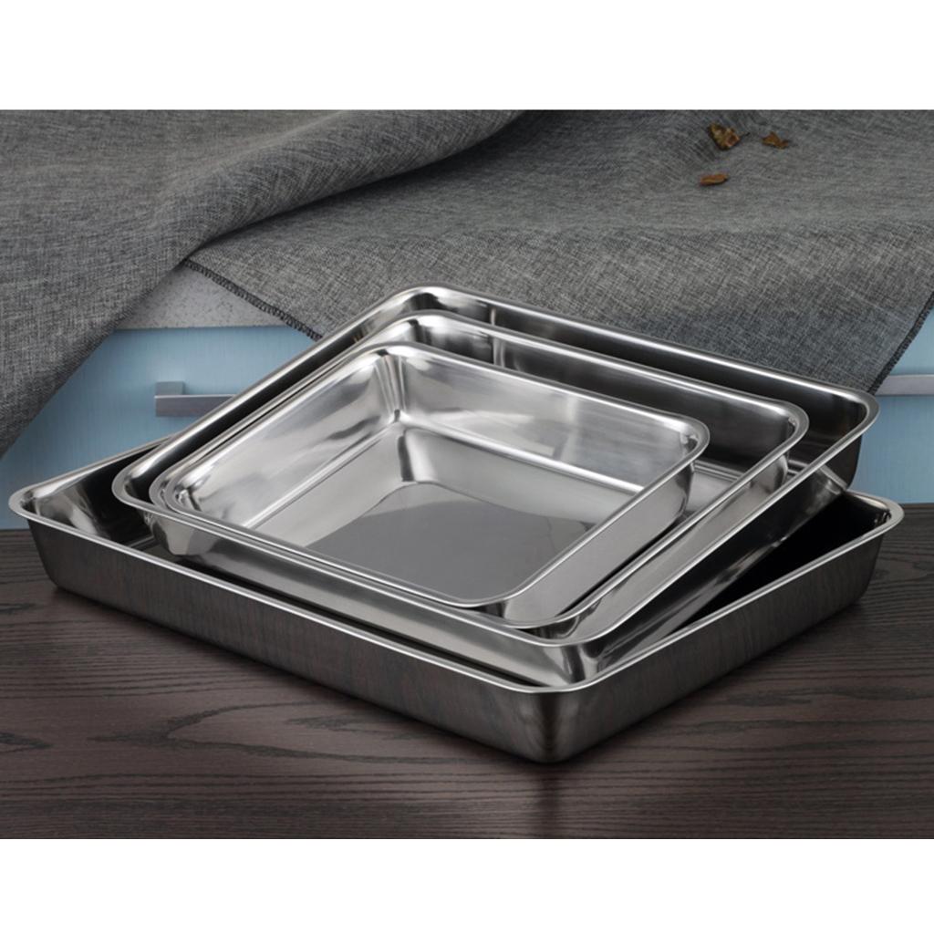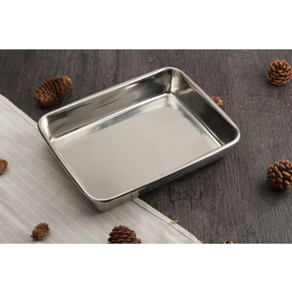 Food Grade 304 Stainless Steel Square Plat Bottom Plate Dish Tray Silver-M