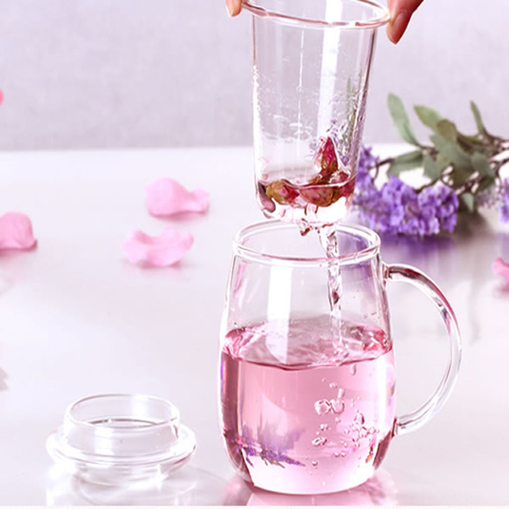 Creative Heat-Resistant Transparent Glass Cup Tea Cup With Lid Infuser Filter Easy to clean with the glass infuser and the Glass Lid.