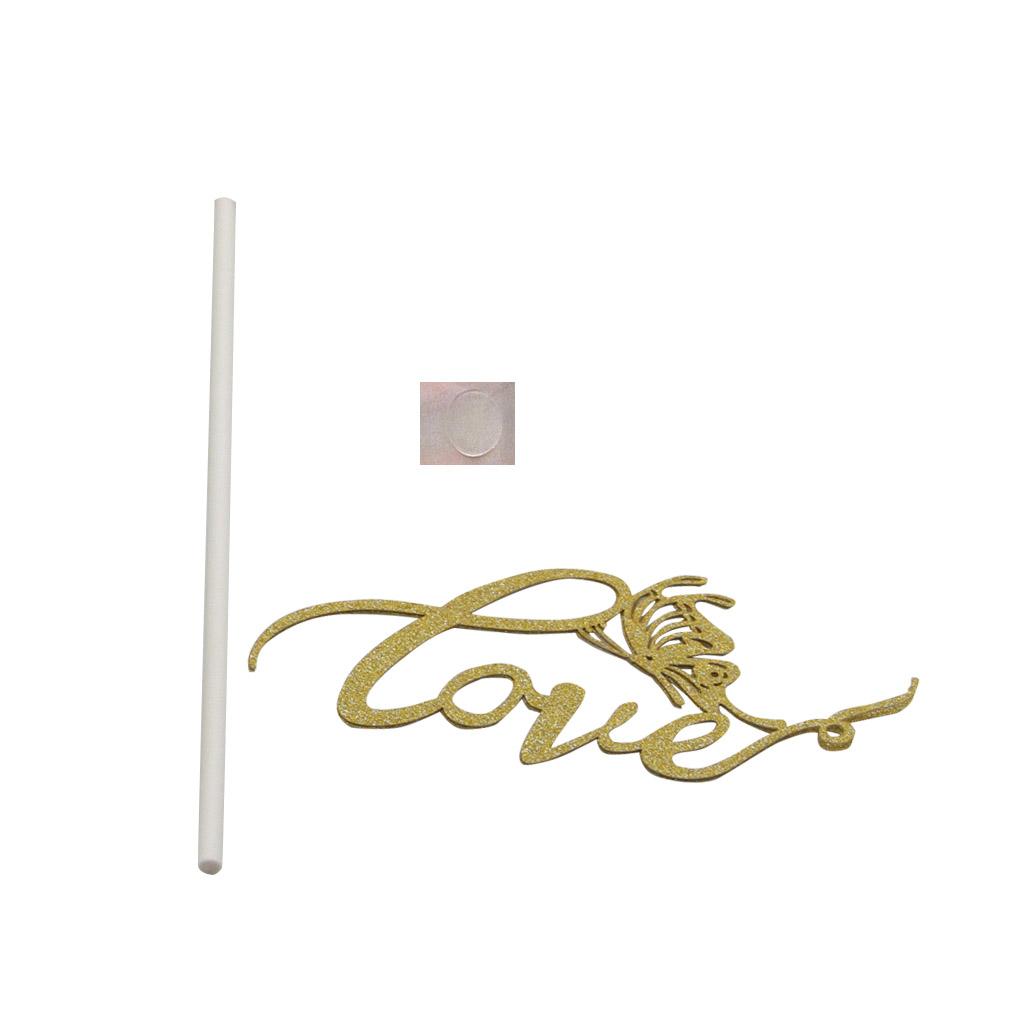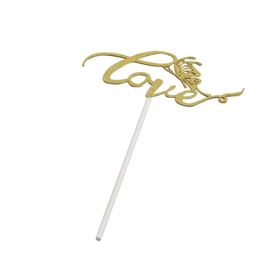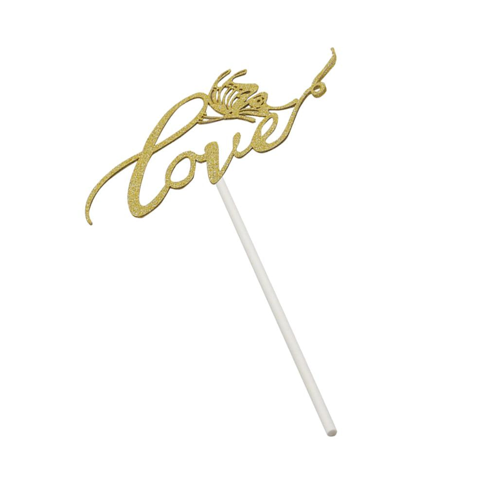 Glitter Love Cake Toppers Wedding Cupcake Picks Bridal Shower Gold