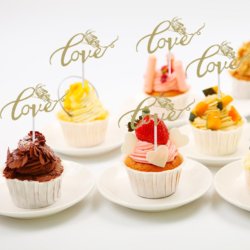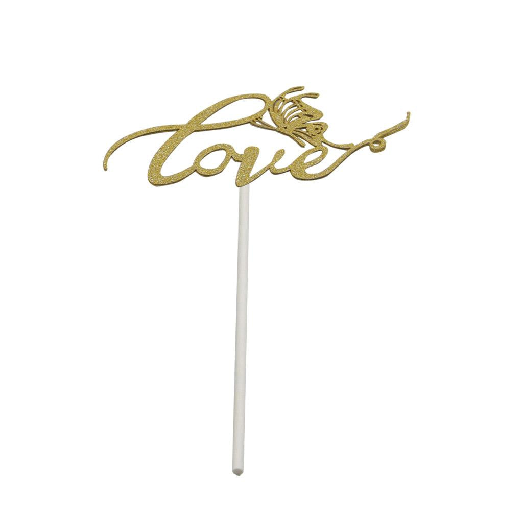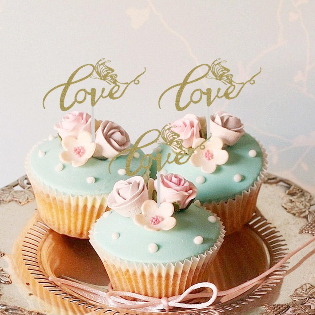 Glitter Love Cake Toppers Wedding Cupcake Picks Bridal Shower Gold