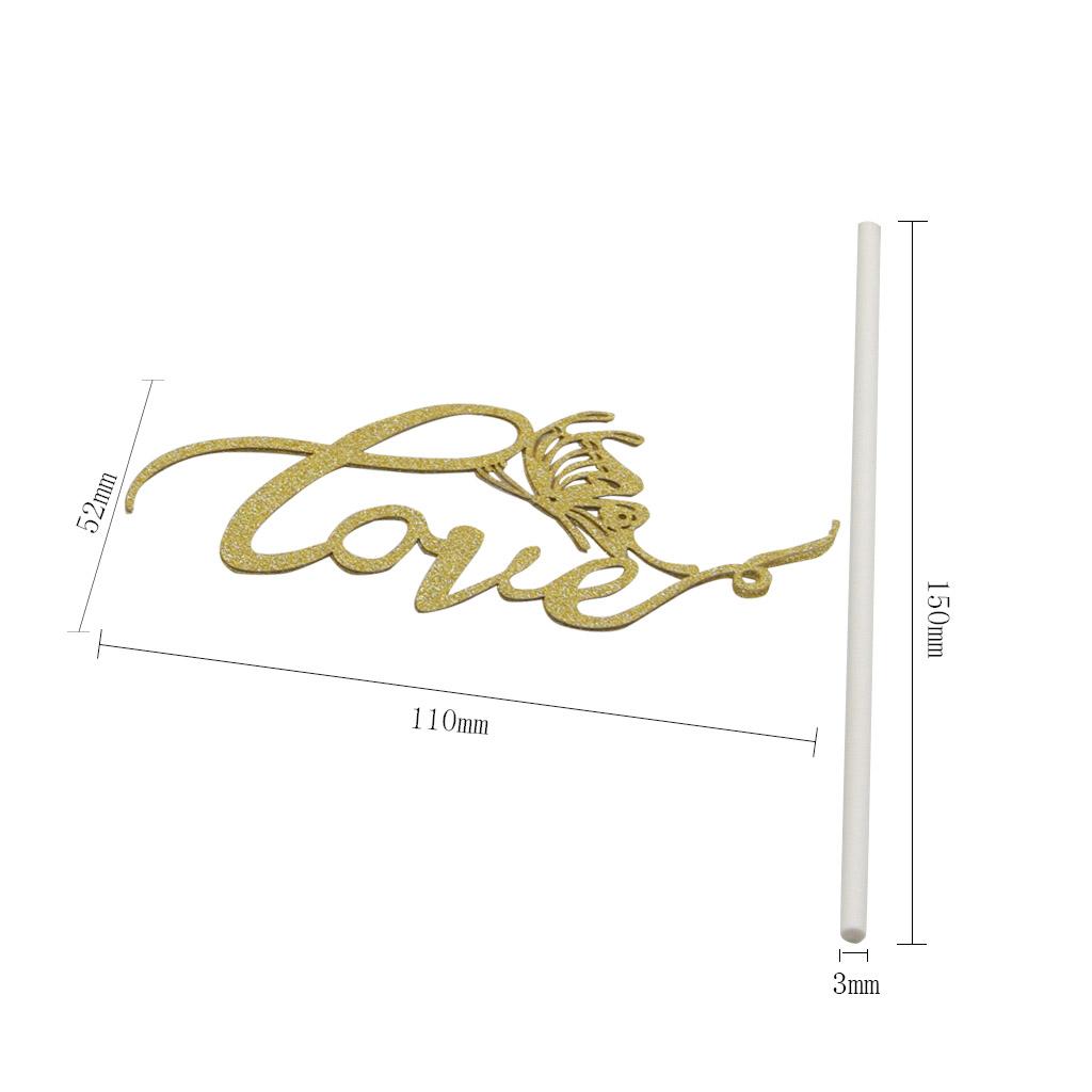 Size of Paper Stick:150x3mm/5.9x0.11in;Size of Love Topper:110x52mm/4.33x2.05in