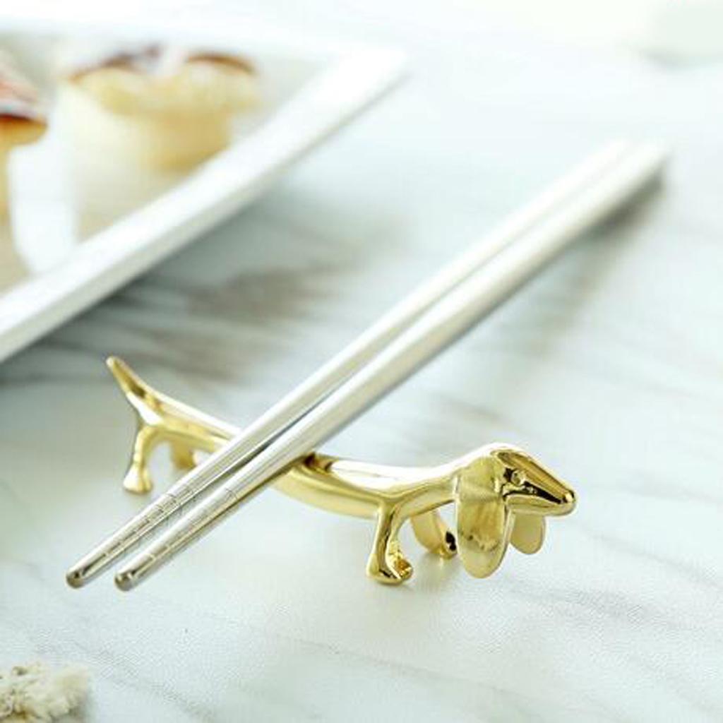 Japanese Style Zinc Alloy Chopsticks Holder Doggy Deer Gold Doggy