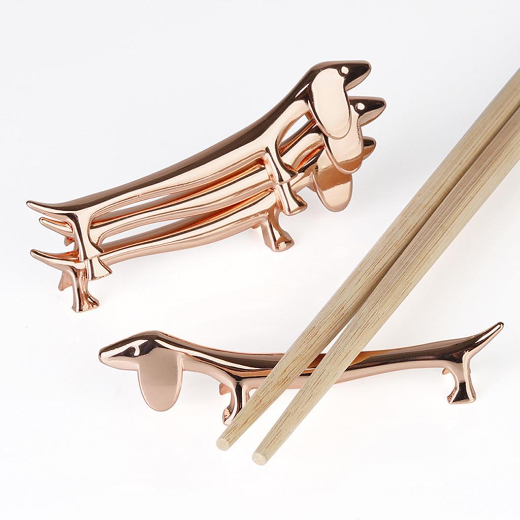 Japanese Style Zinc Alloy Chopsticks Holder Doggy Deer Rose Gold Doggy