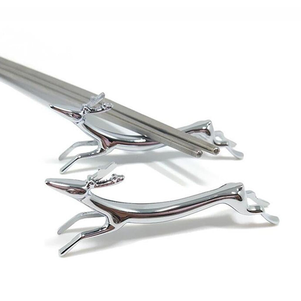 Japanese Style Zinc Alloy Chopsticks Holder Doggy Deer Silver Deer
