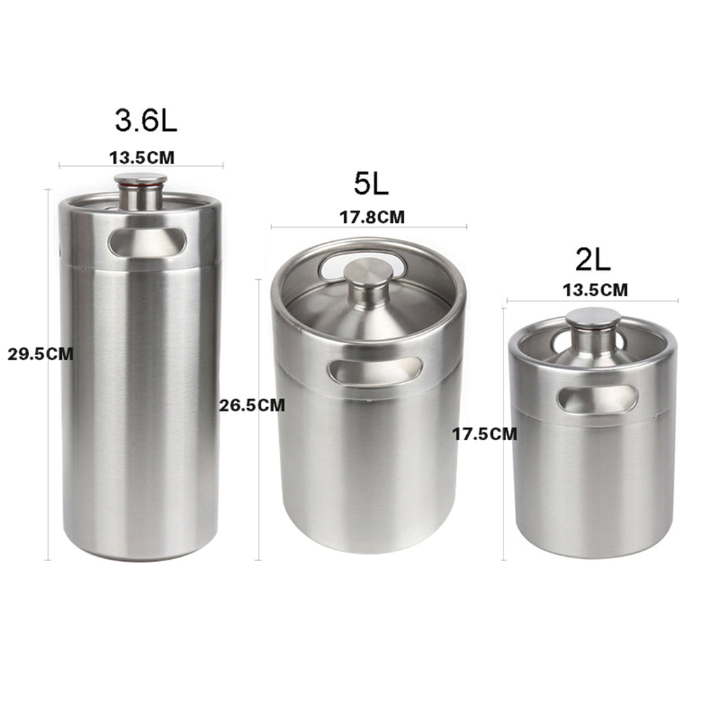 Keg Growler Mini Stainless Steel Beer Growler Wine Bottle Home Brewing 2L