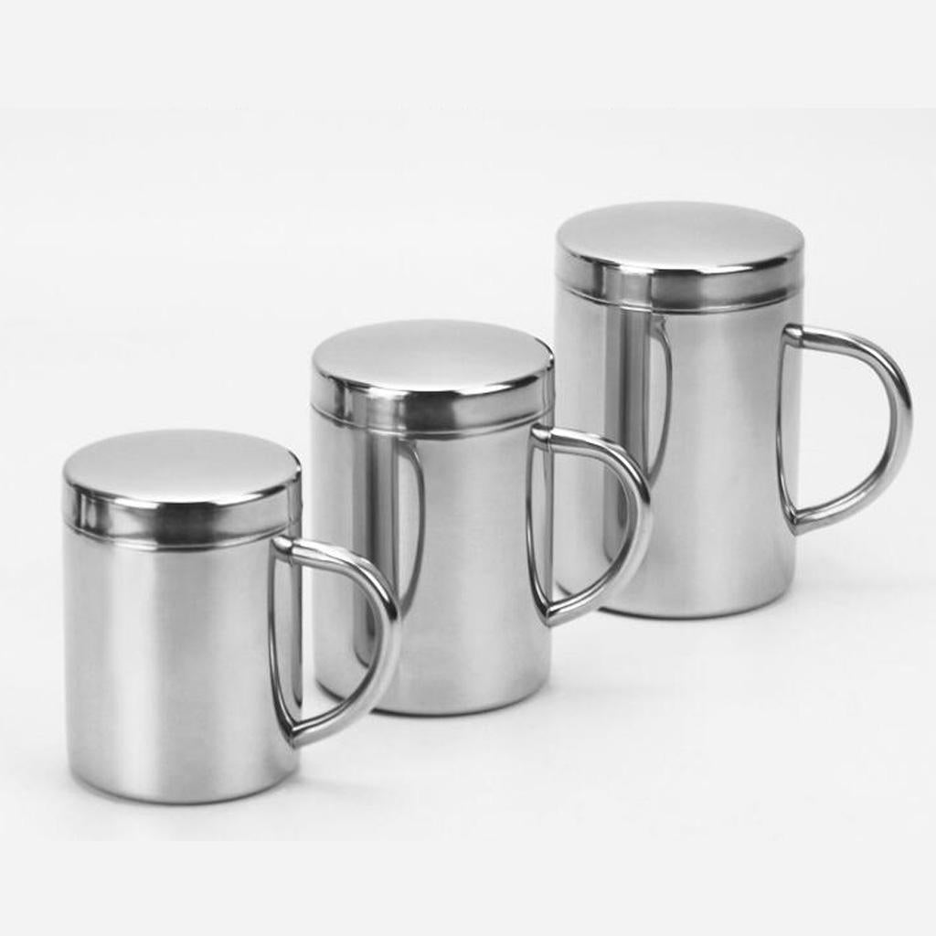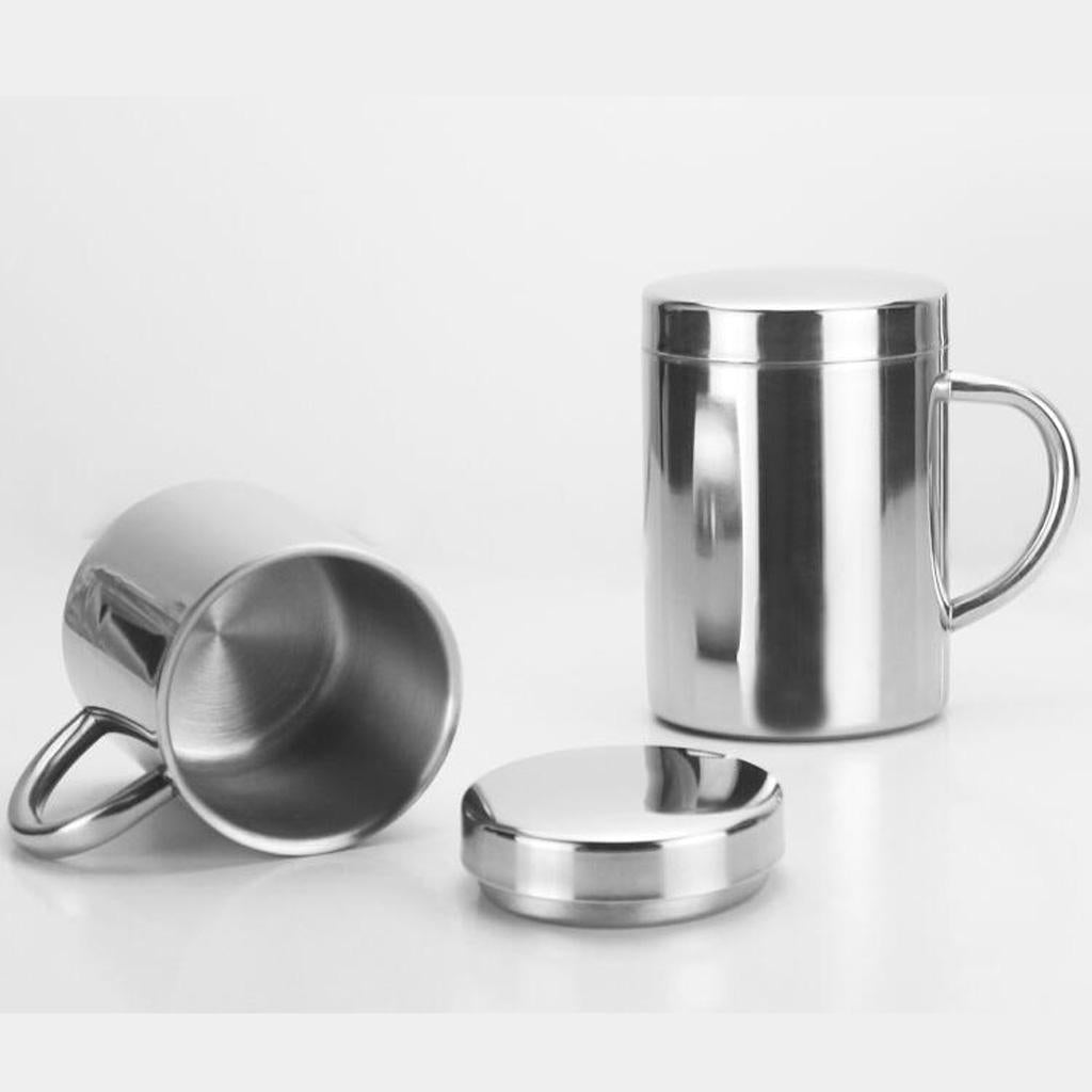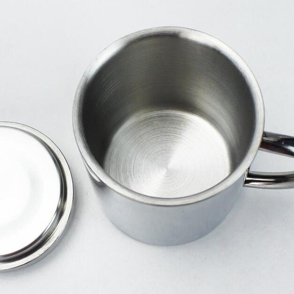 Kids Stainless Steel Hot Water Cup Double Wall Insulate Beer Mug with Lid 220ml