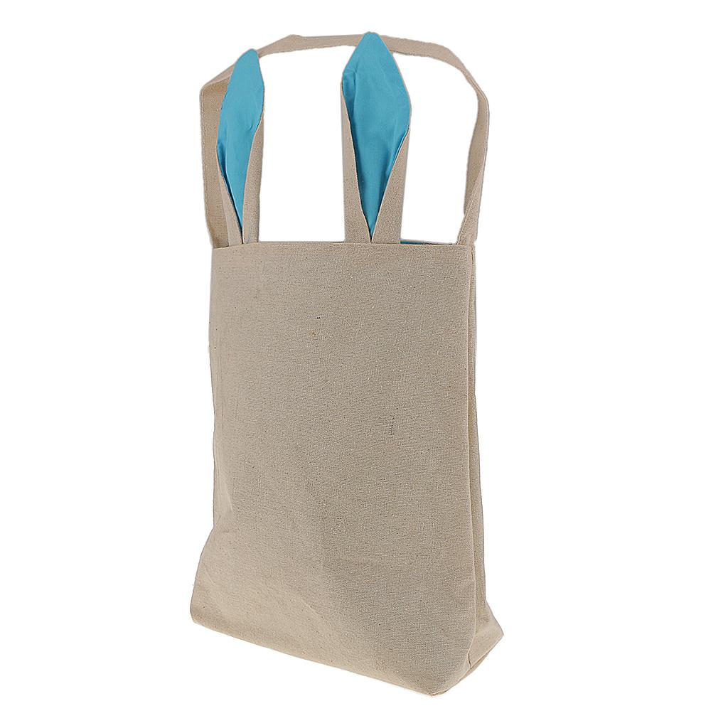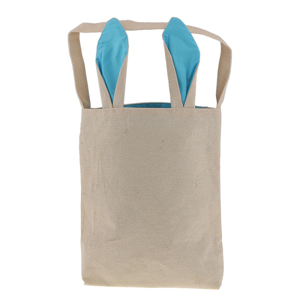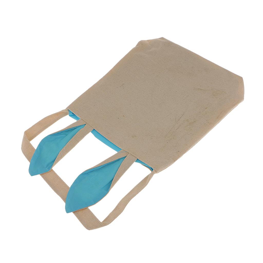 Lovely Easter Bunny Bag Basket Tote Handbag Dual Layer Bunny Ears Jute Cloth Blue
