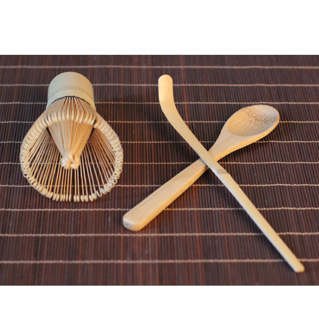 Bamboo whisk, tea scoop, and tea spoon are parts of tea ceremony set