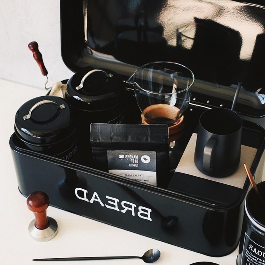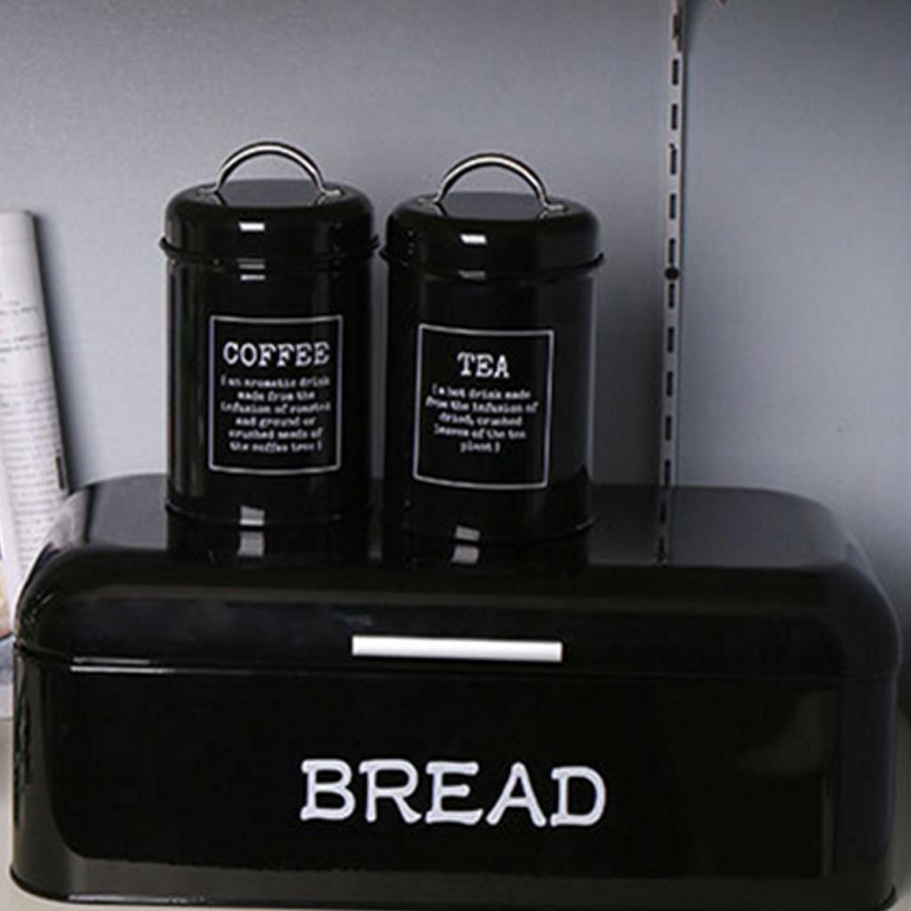 Metal Bread Box for Kitchen Counter Bread Bin Holder Storage Container Black