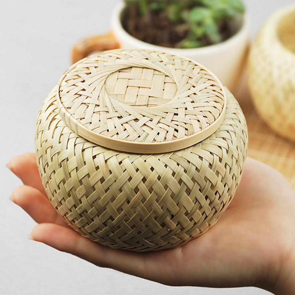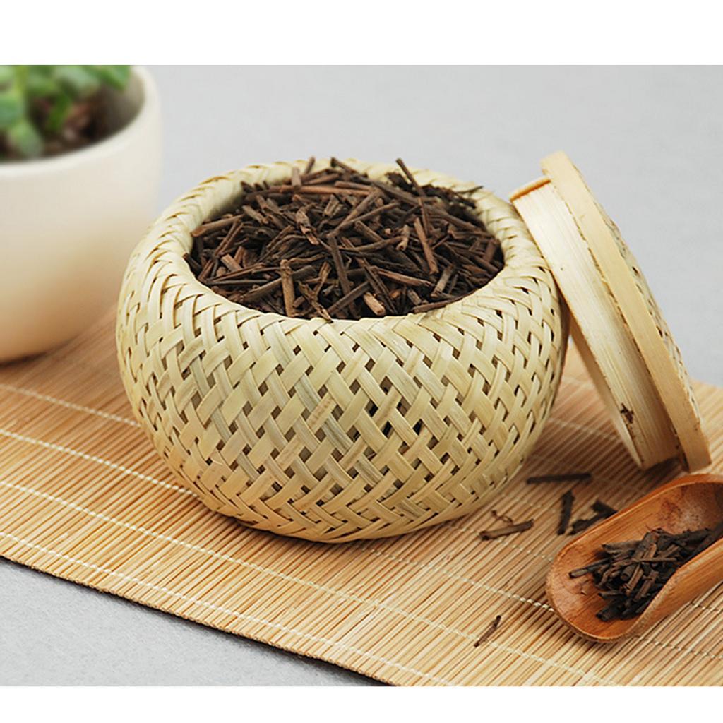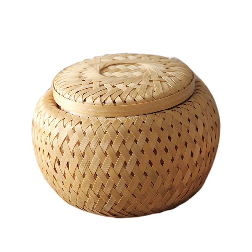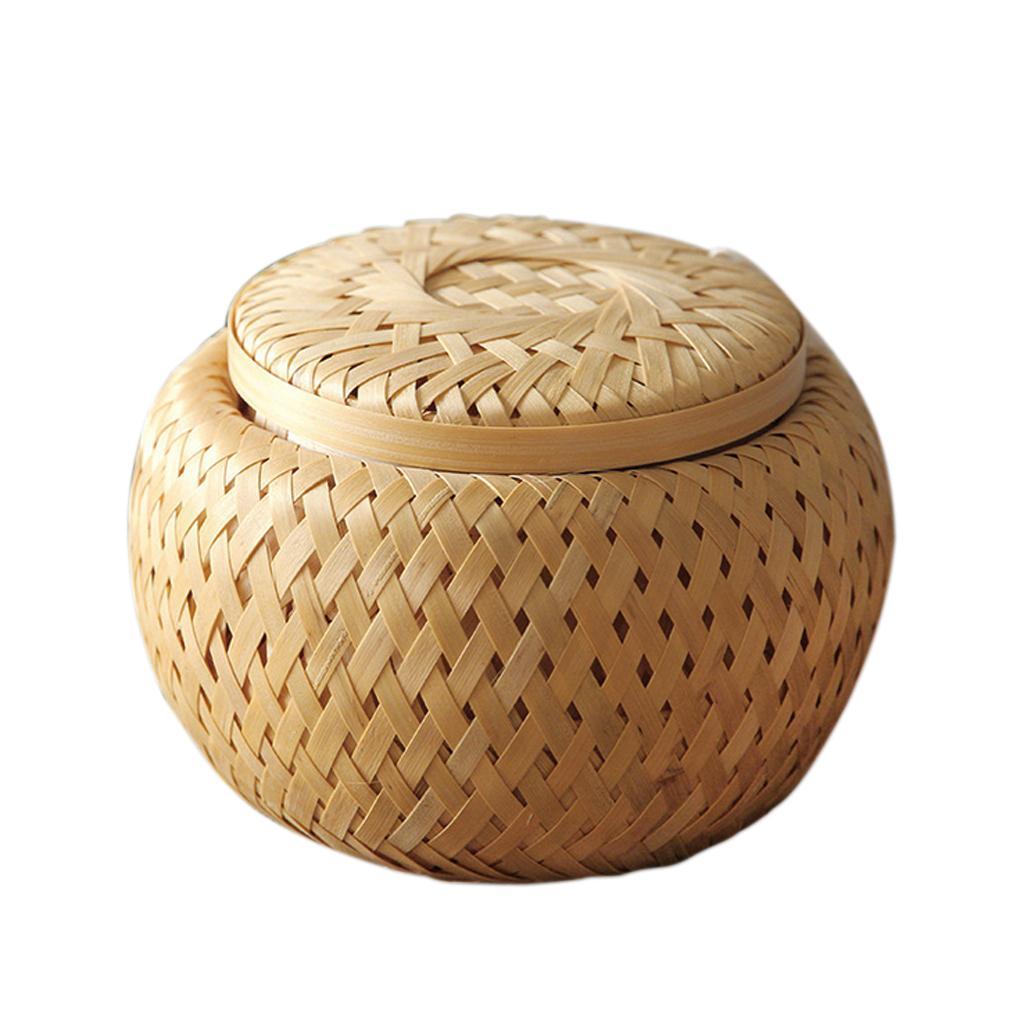 Natural Round Bamboo Tea Box Candy Dried Foods Jar Container Storage