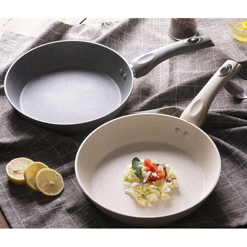 Non-stick Round Frying Pan Egg Pan Aluminum Kitchen Cookware Beige 20cm