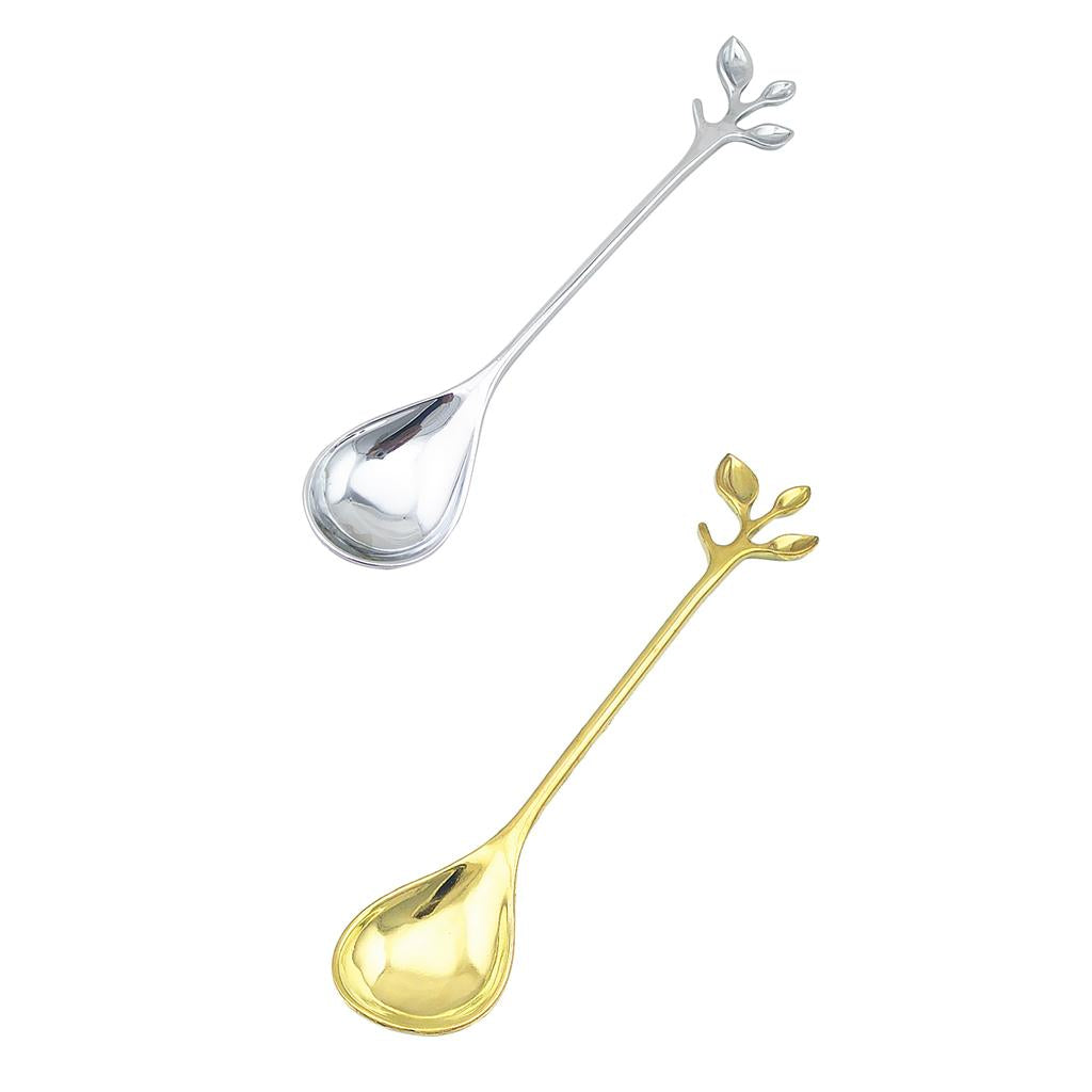 Polished Leaves Pattern Small Spoon Coffee Ice- Cream Tea Spoon Silver