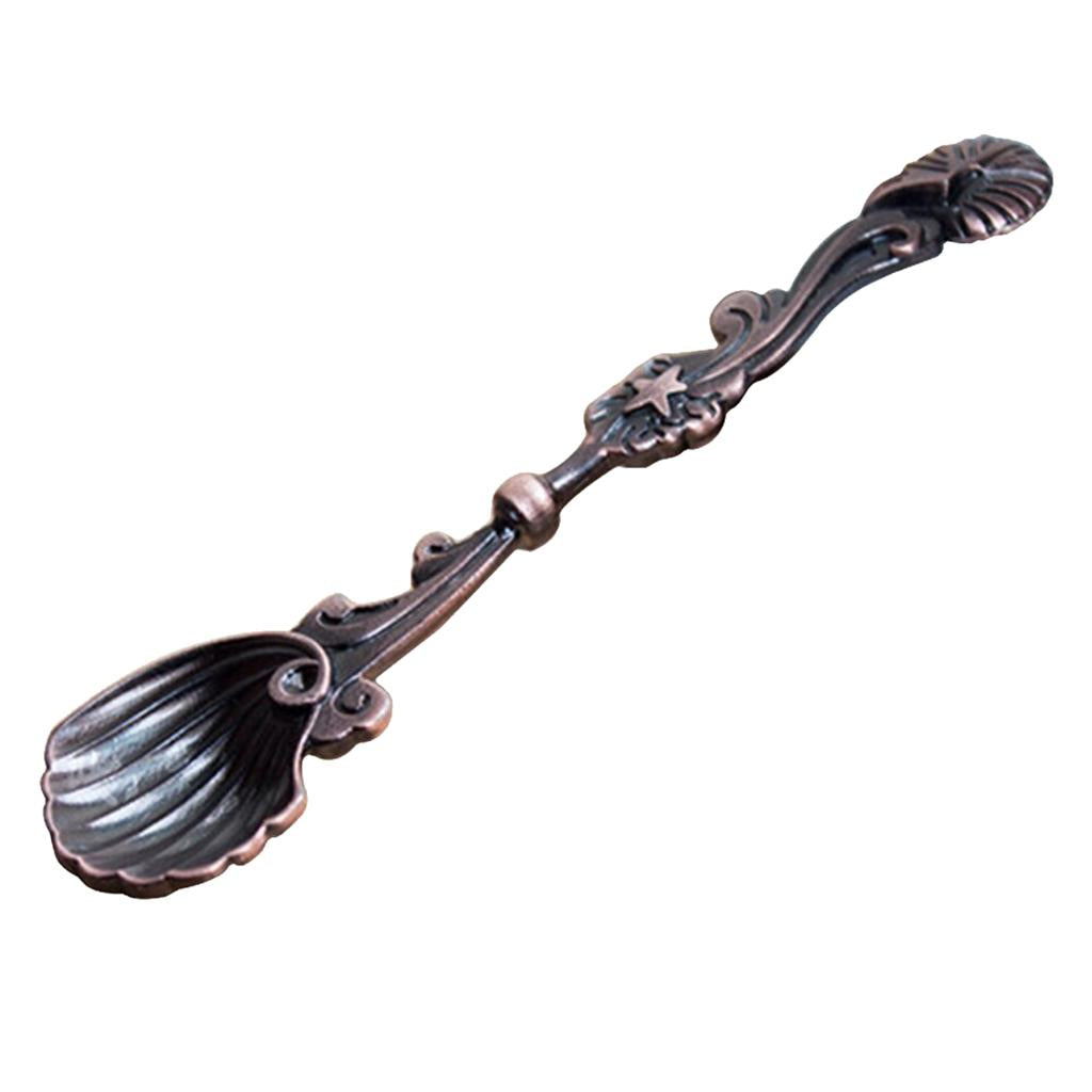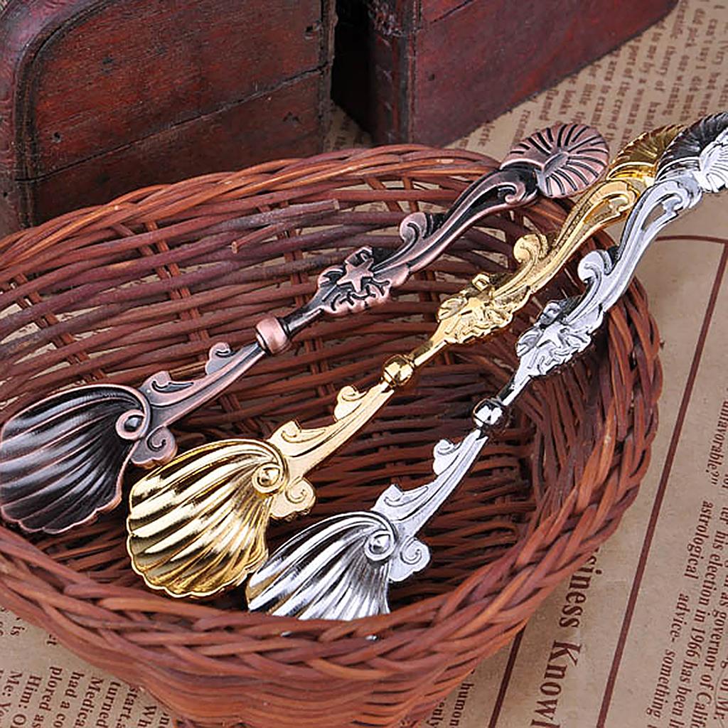 Retro Conch Stripe Coffee Spoon Condiment Mixing Scoop Dessert Ladle Bronze