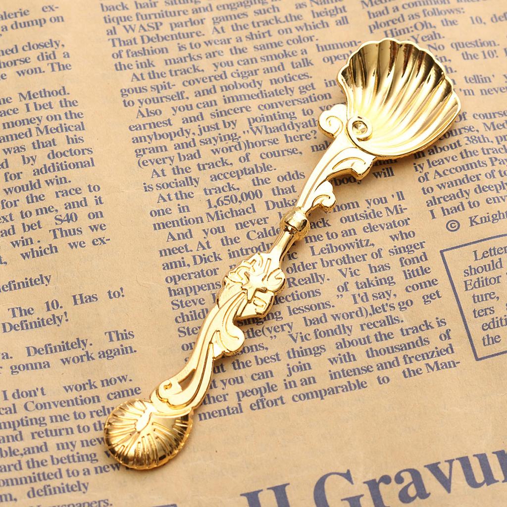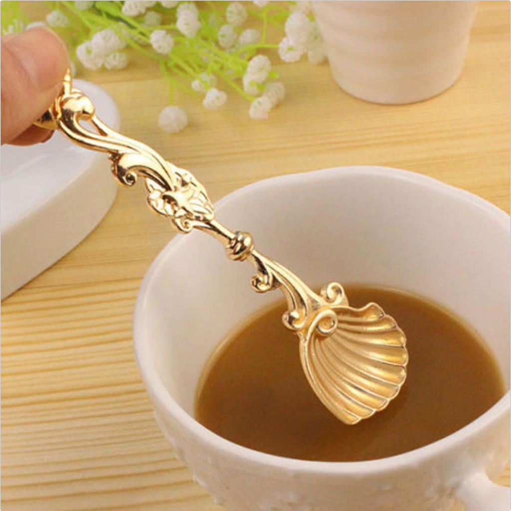 Retro Conch Stripe Coffee Spoon Condiment Mixing Scoop Dessert Ladle Gold