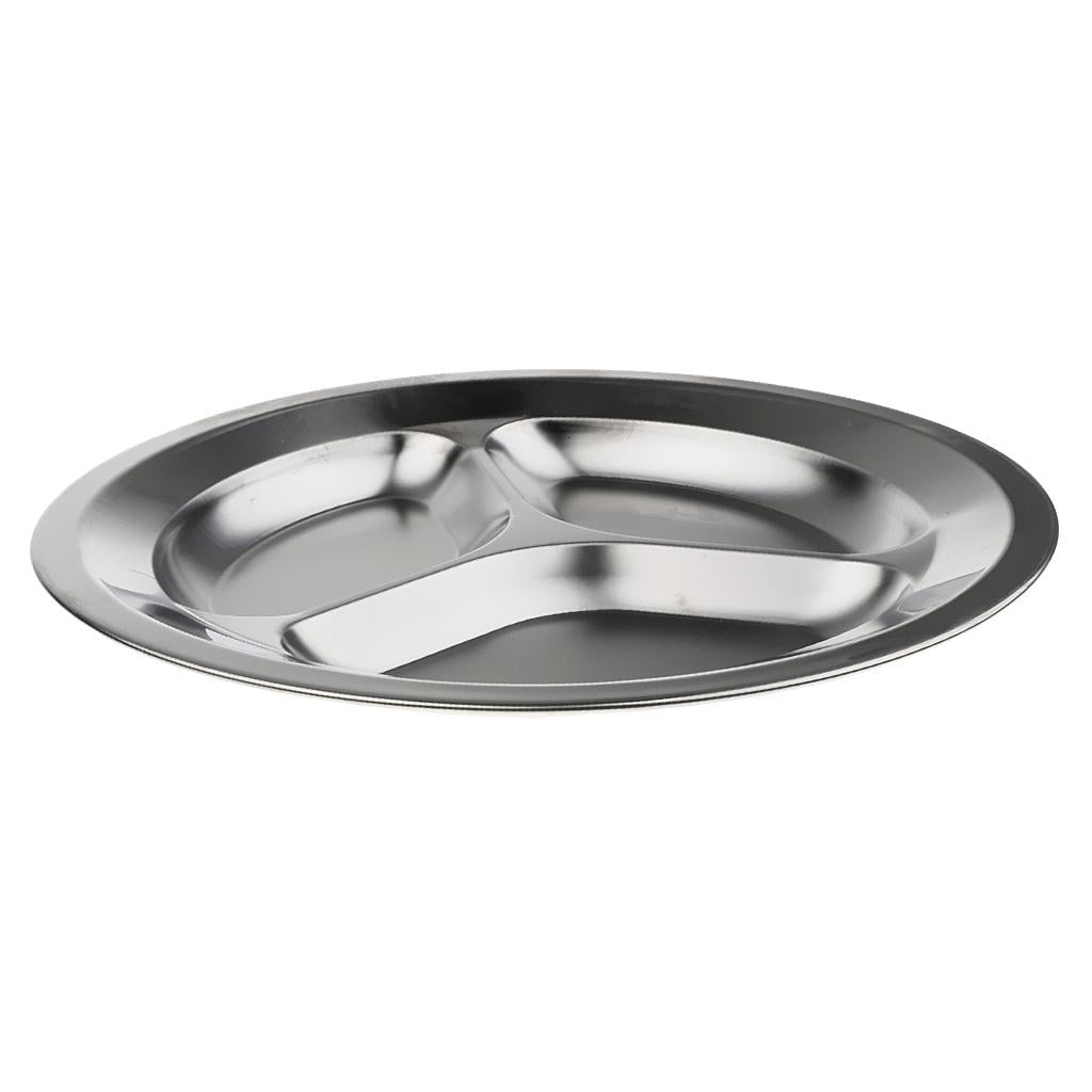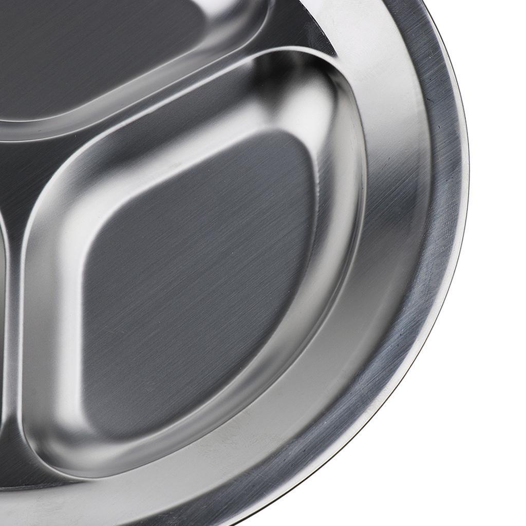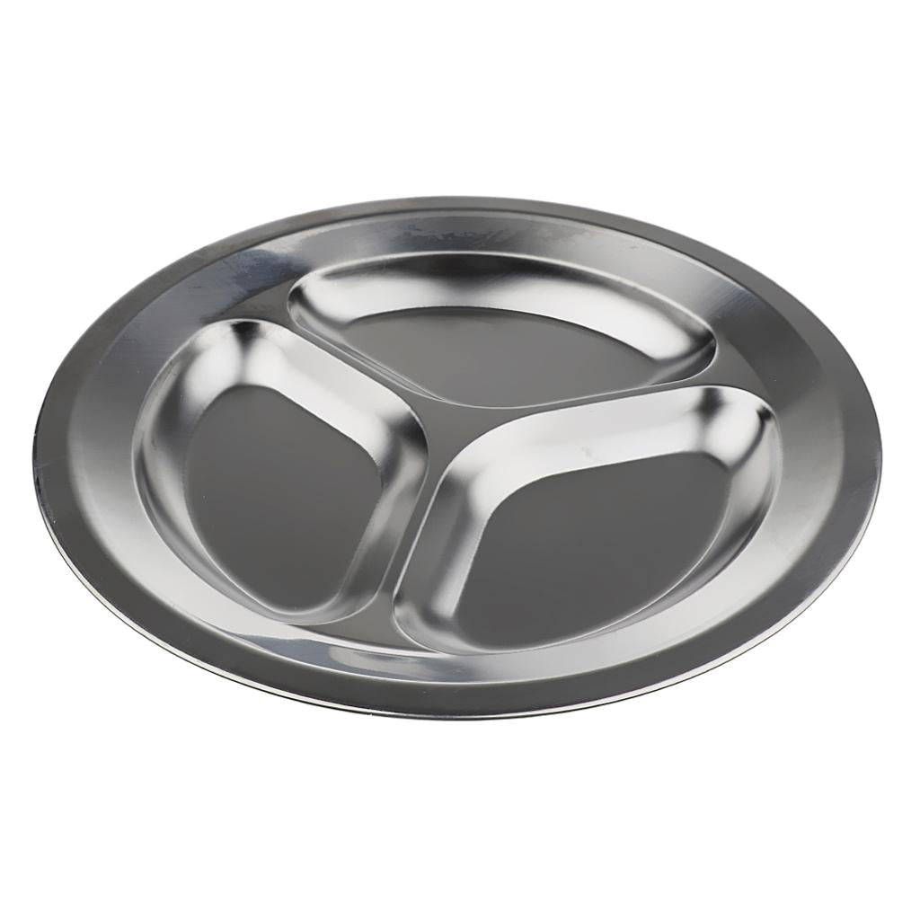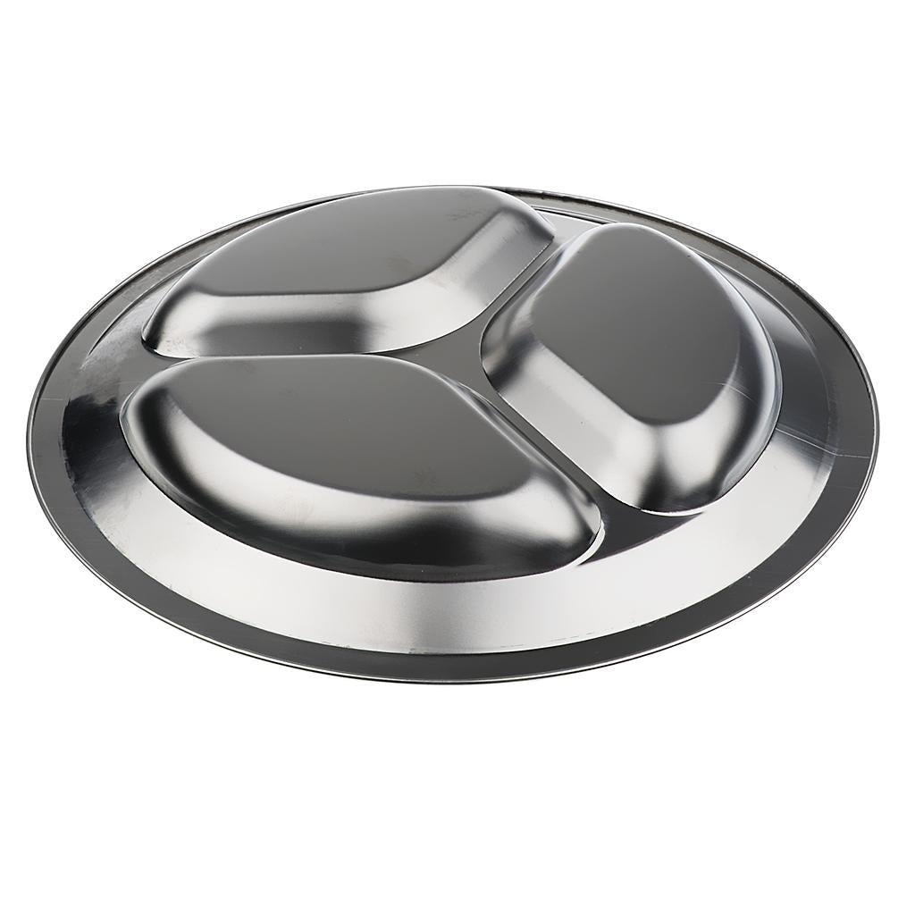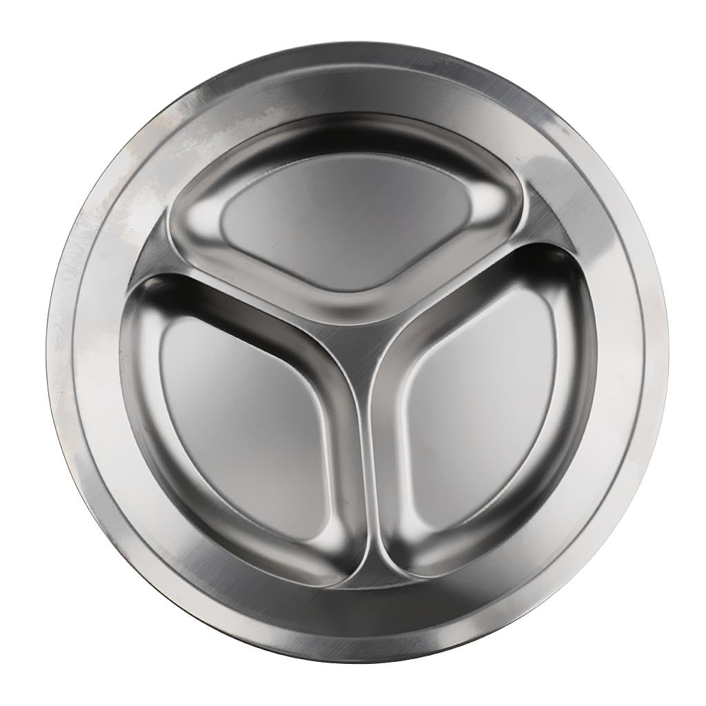 Round 3 Sections Stainless Steel Divided Dish Students Grid Dinner Plate