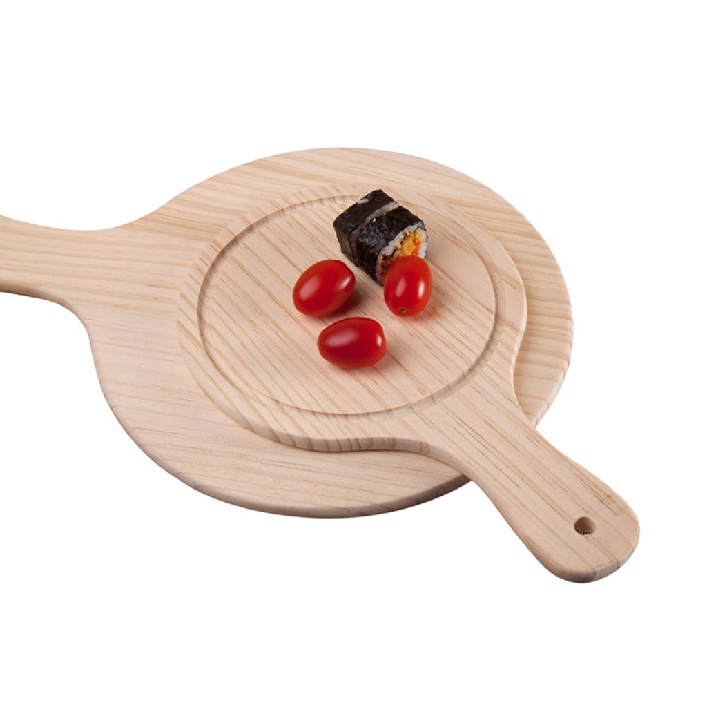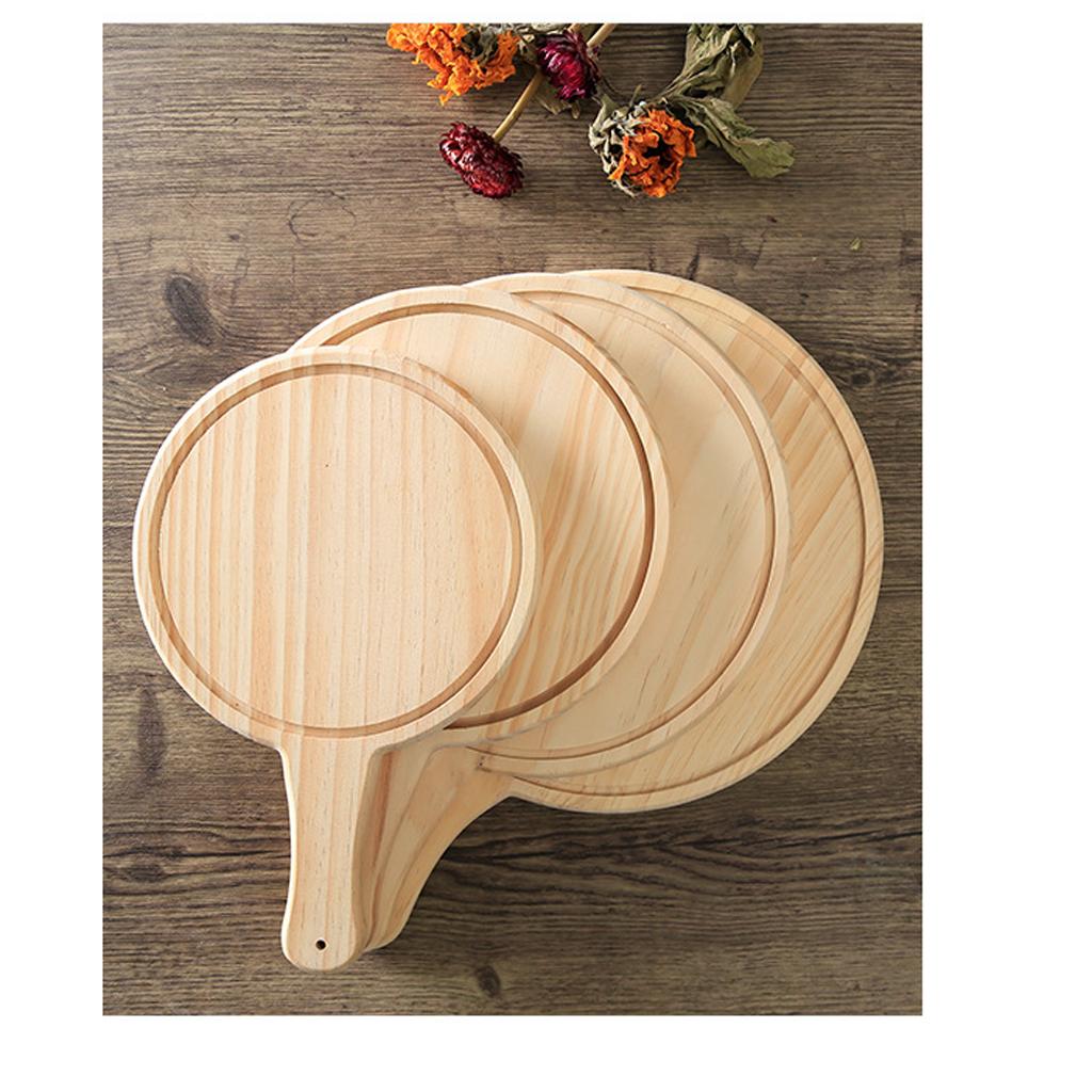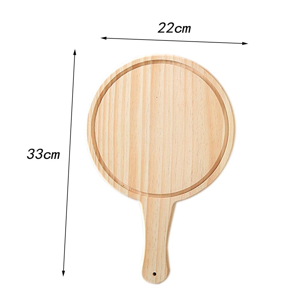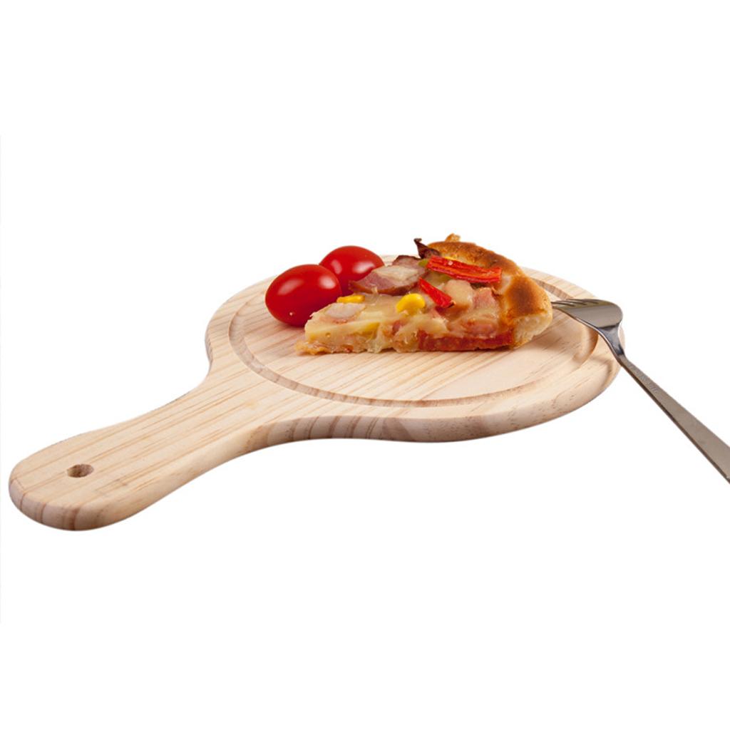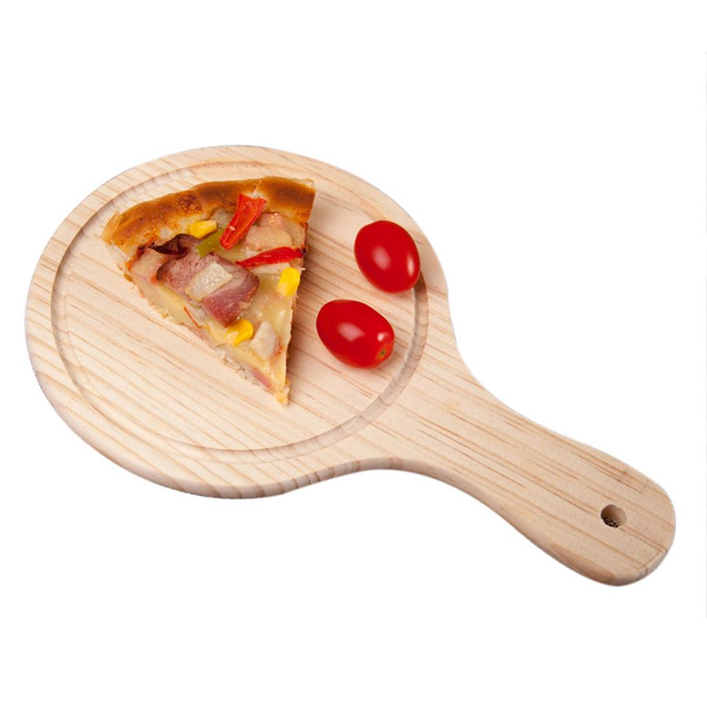 Round Wooden Board Kitchen Pizza Bread Plate Serving Tray with Handle 9inch