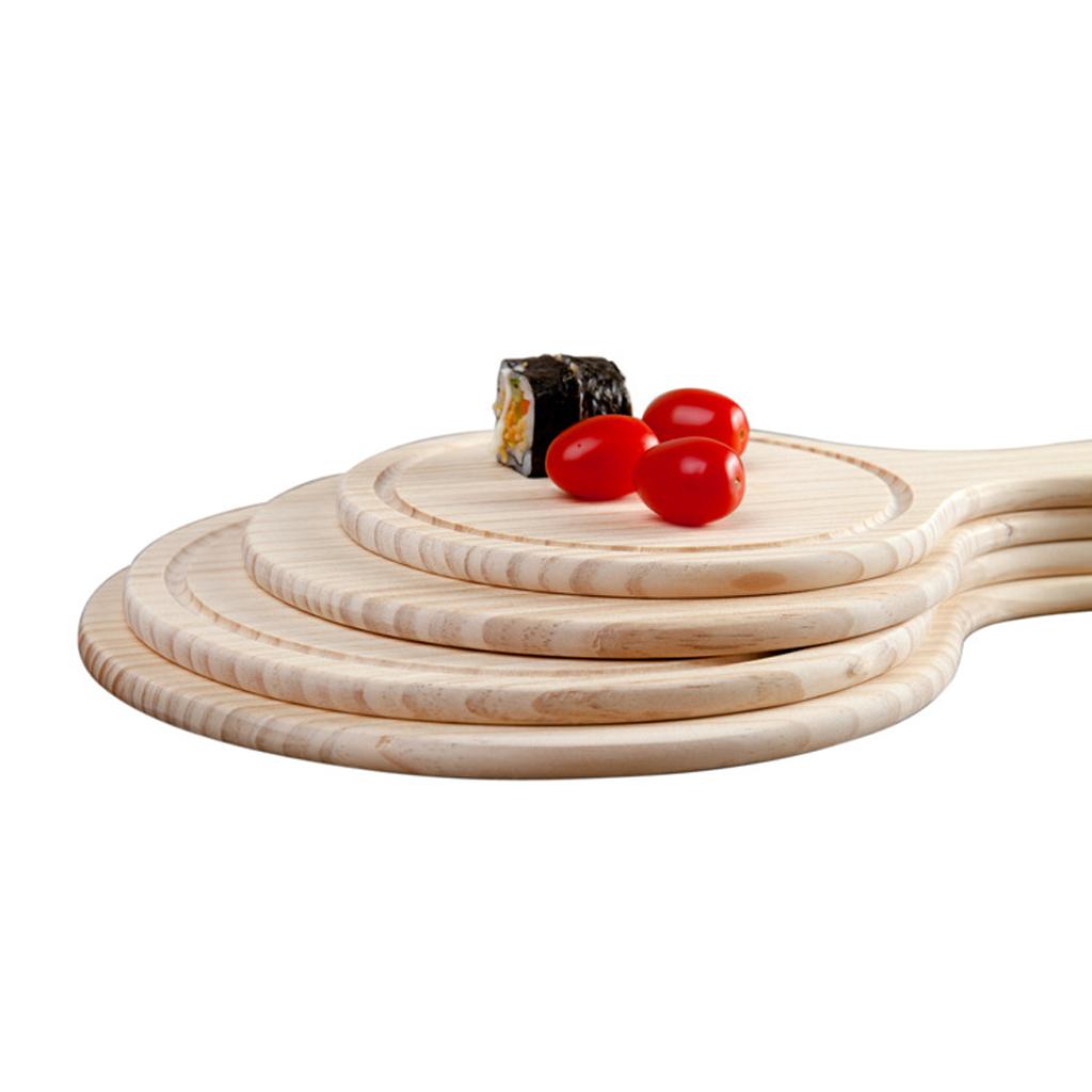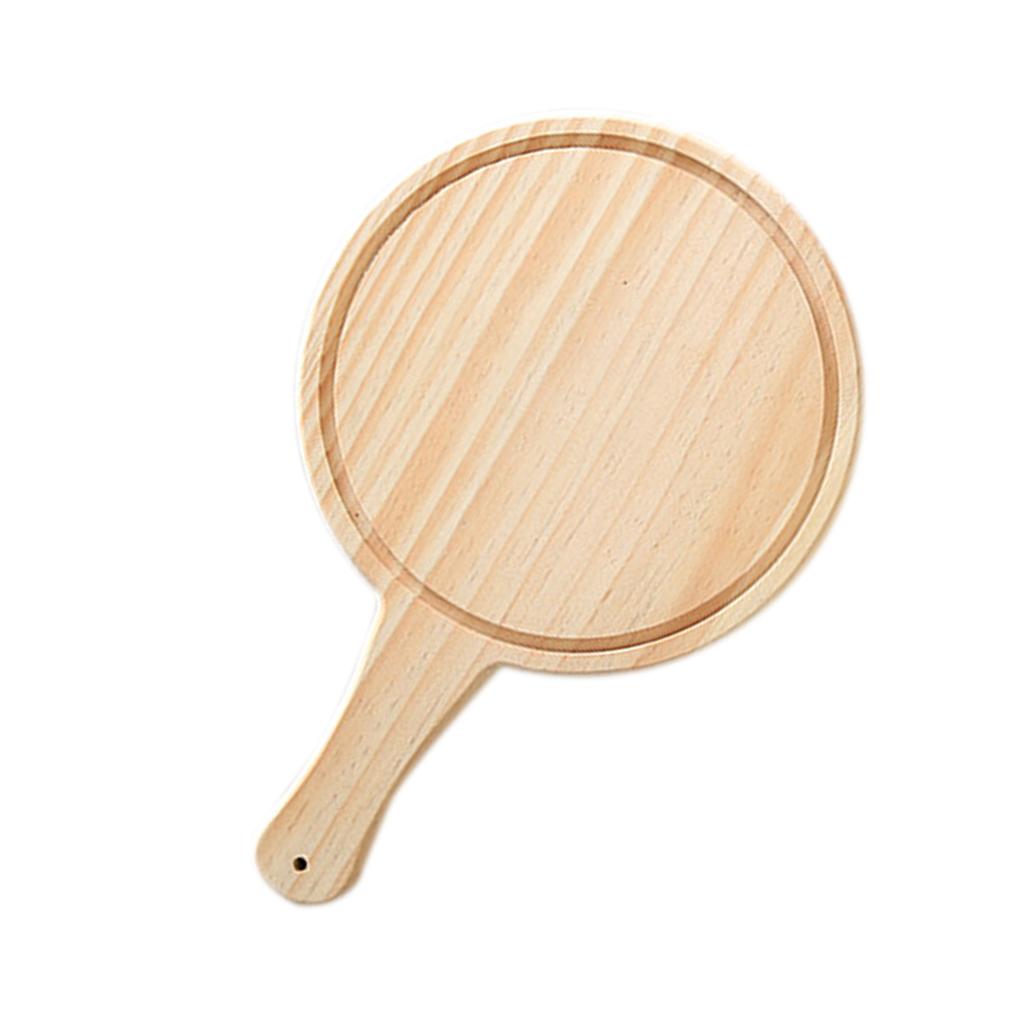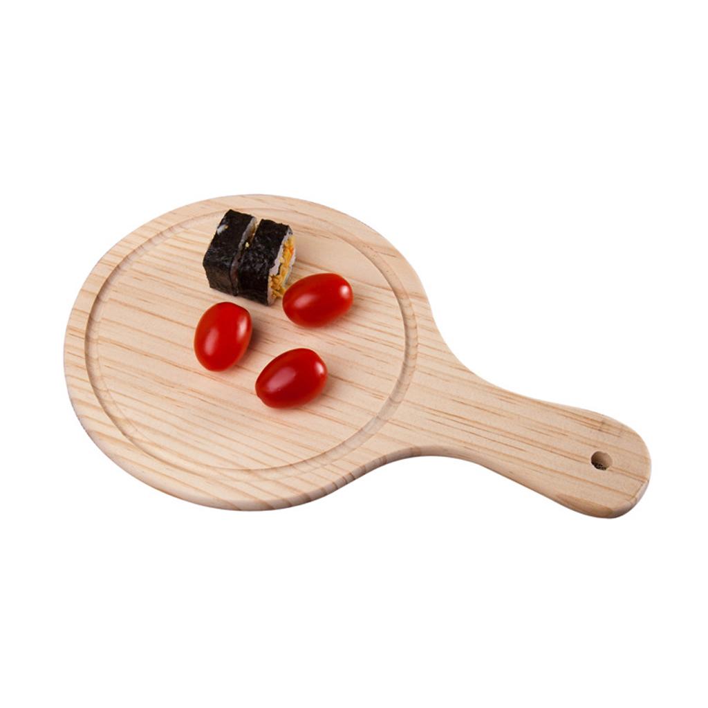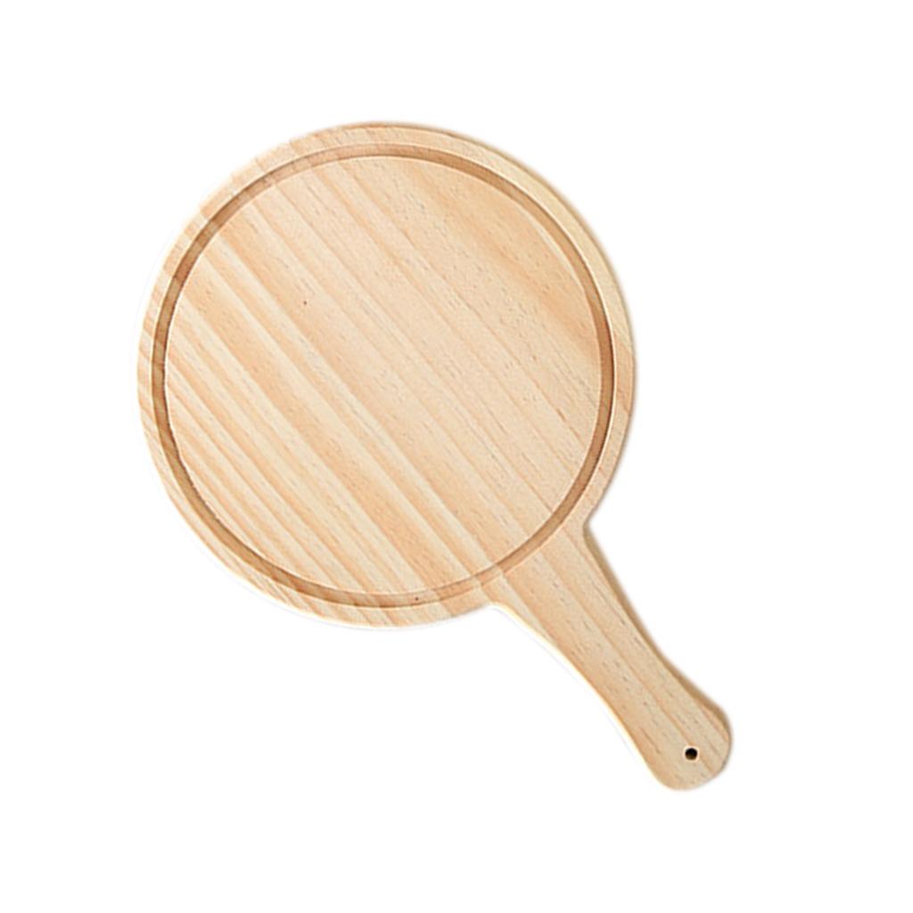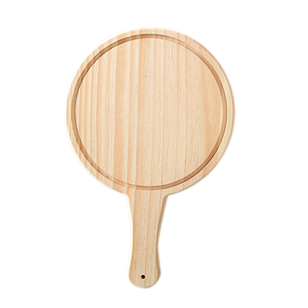 Round Wooden Board Kitchen Pizza Bread Plate Serving Tray with Handle 9inch