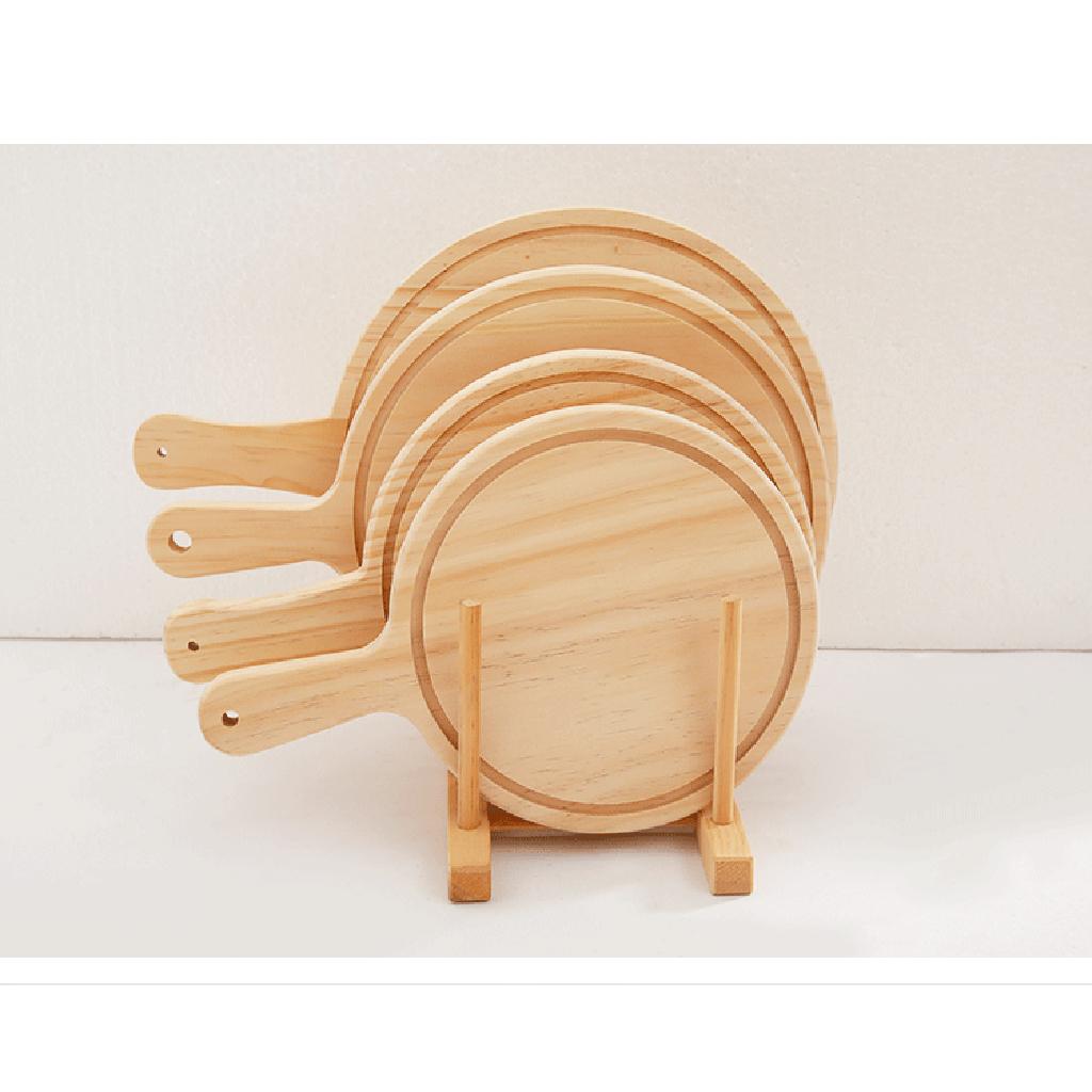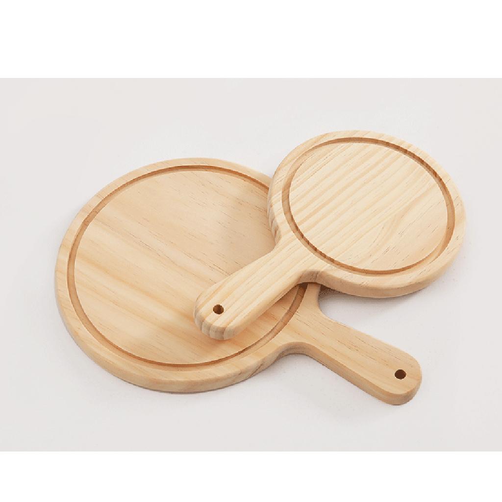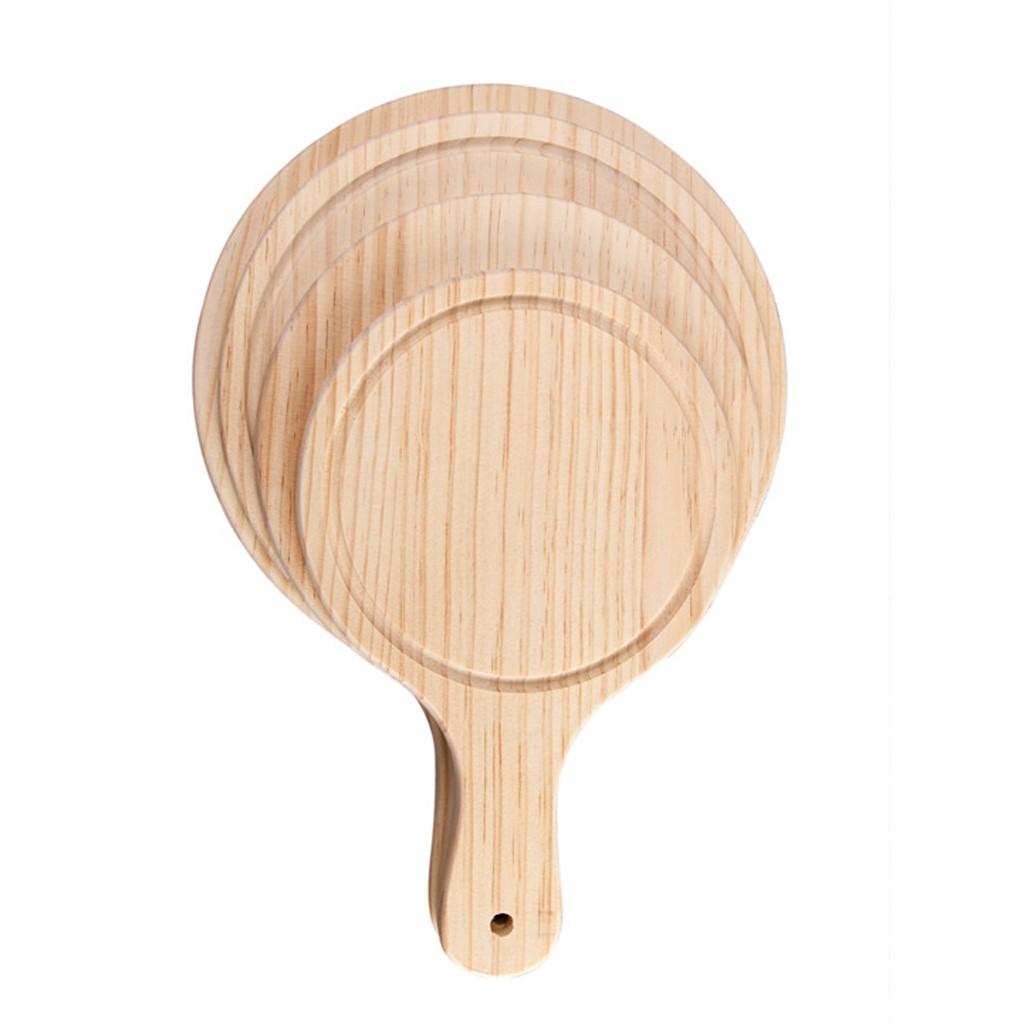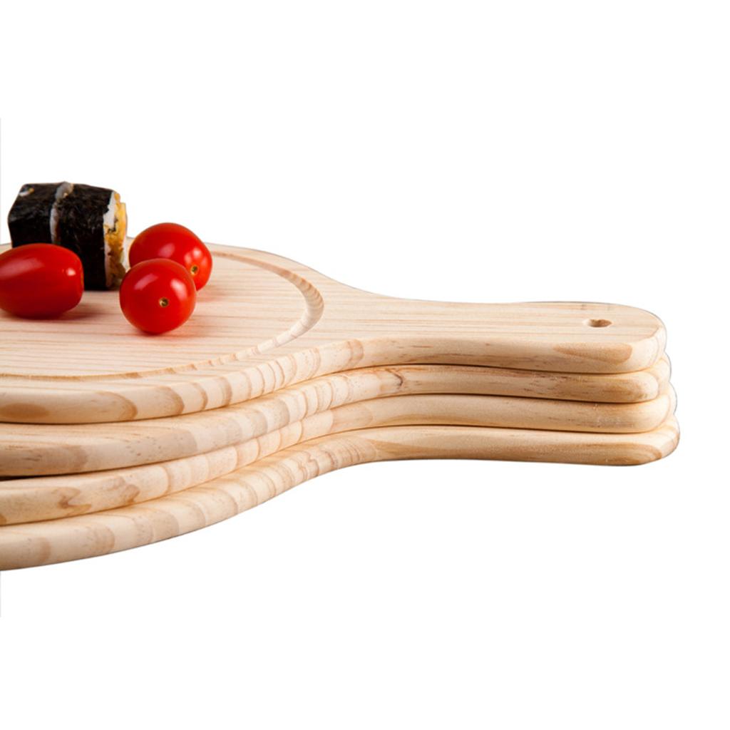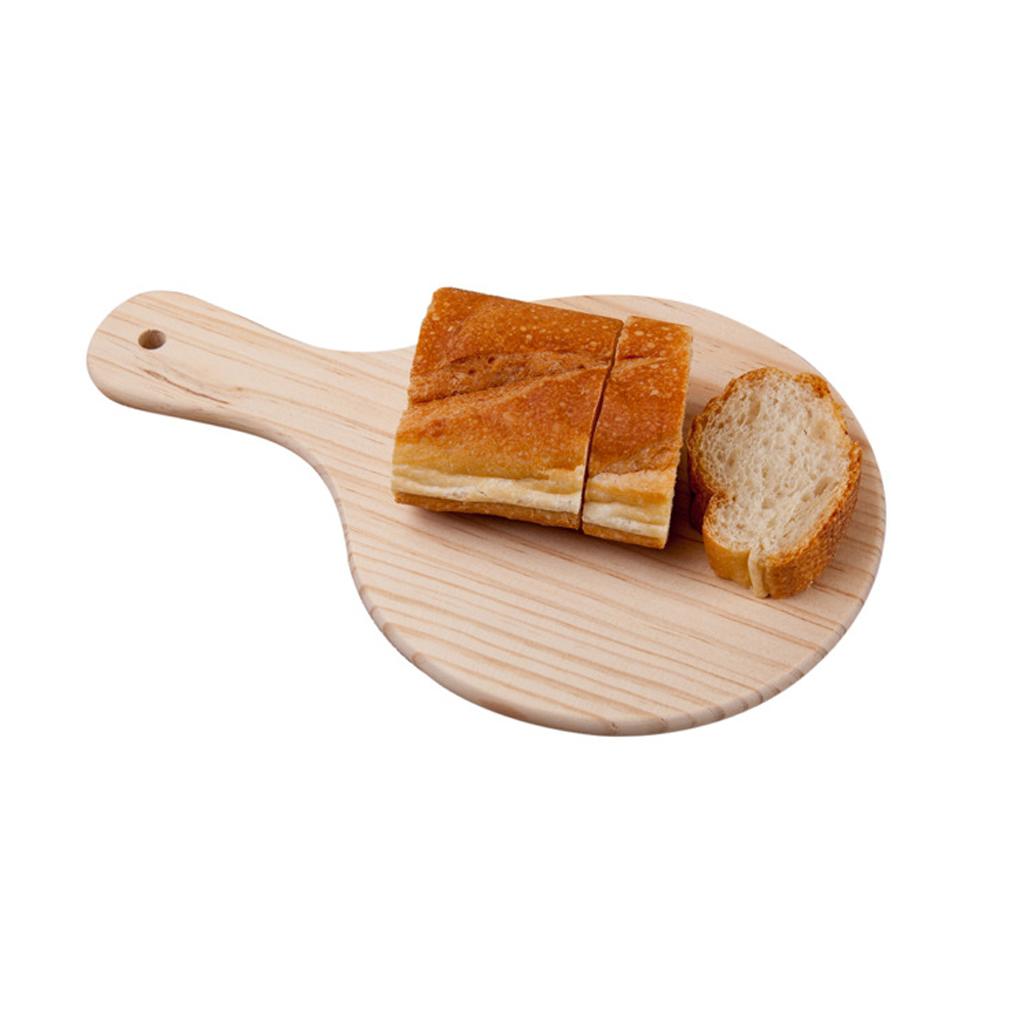 Round Wooden Board Kitchen Pizza Bread Plate Serving Tray with Handle 9inch