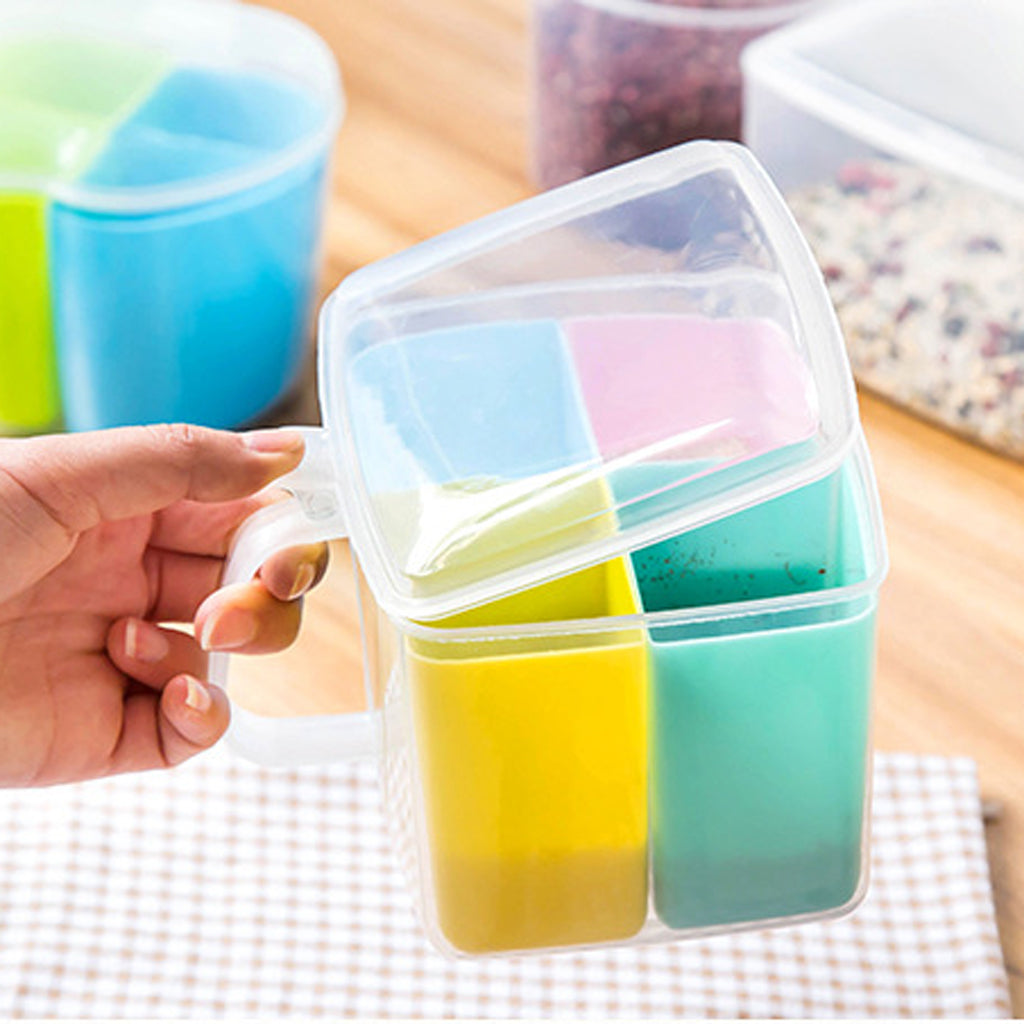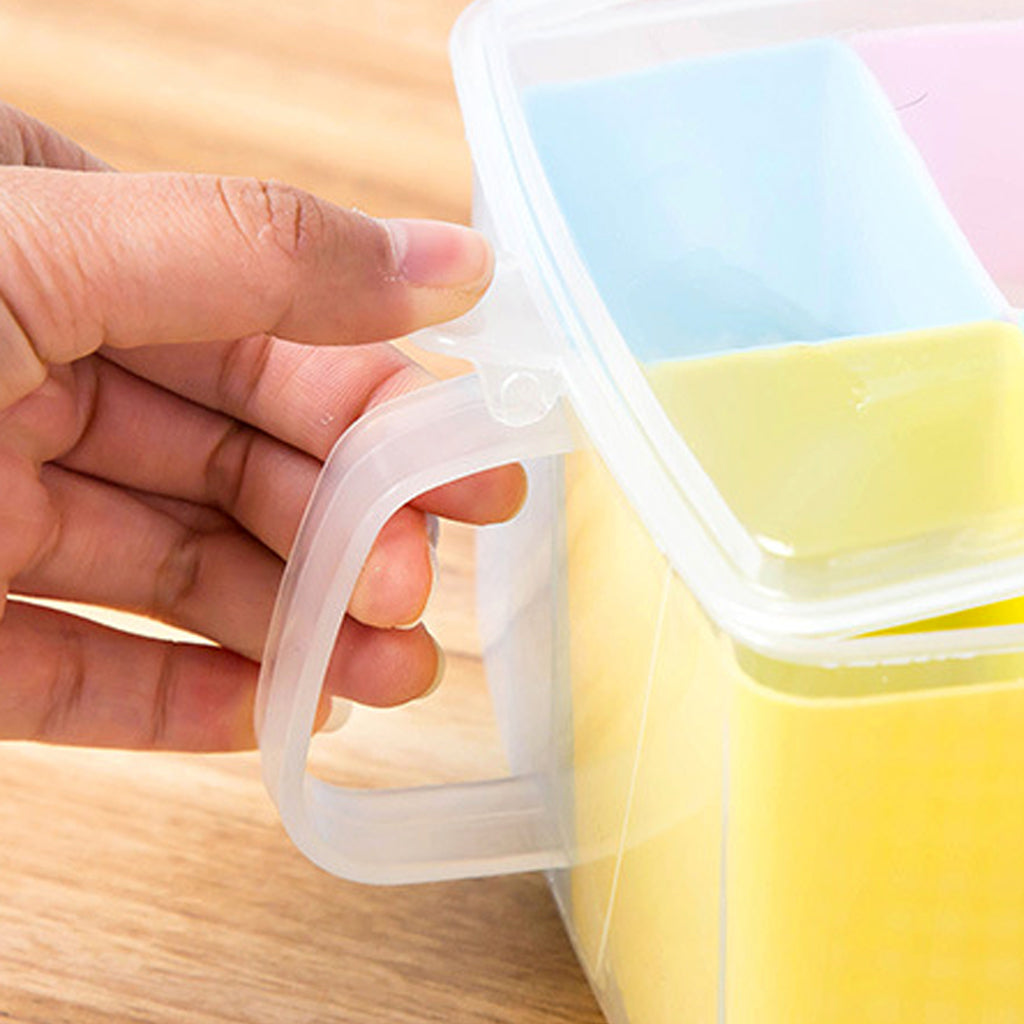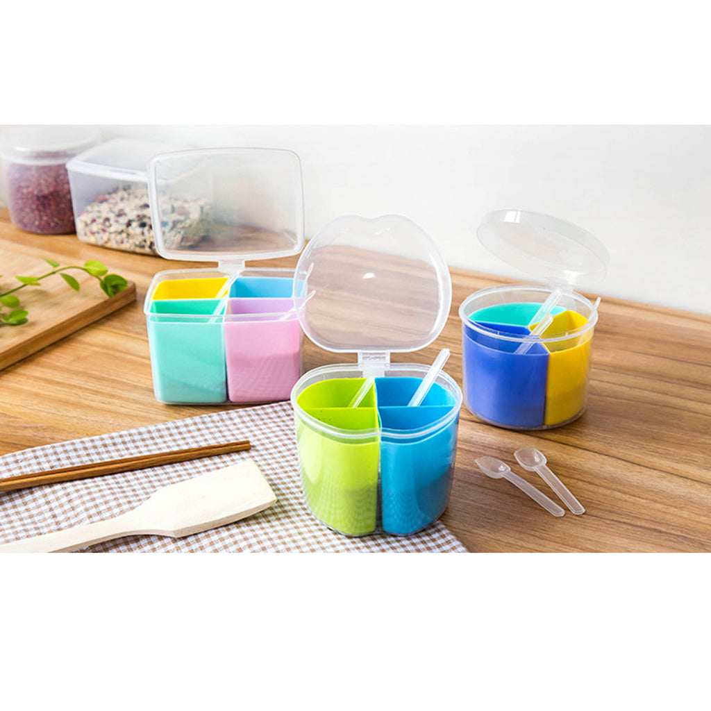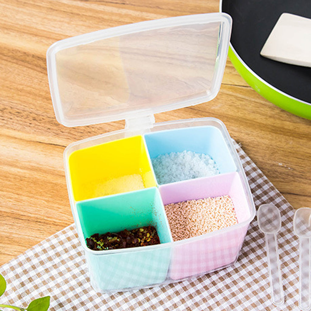 Square Plastic Spice Jar Container Condiment Dispenser Cruet Box w/ 4 Spoons
