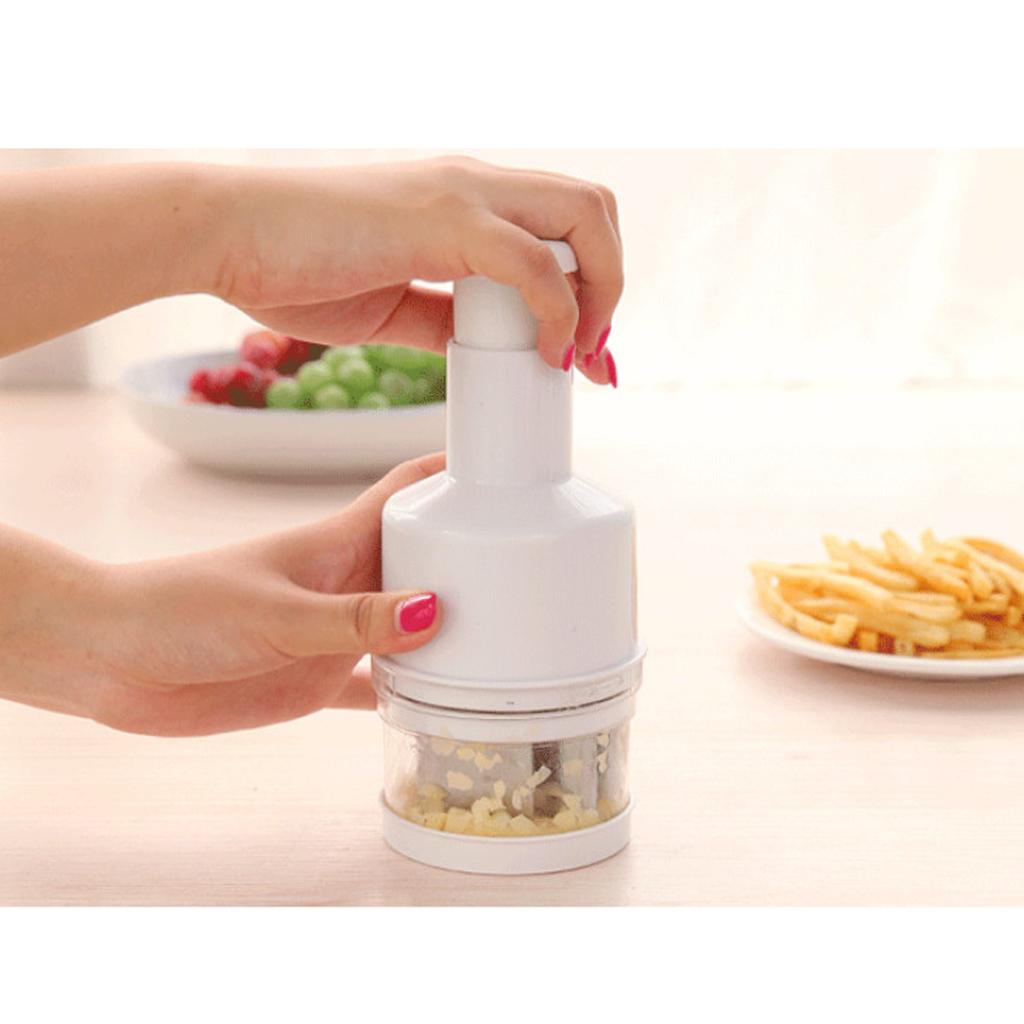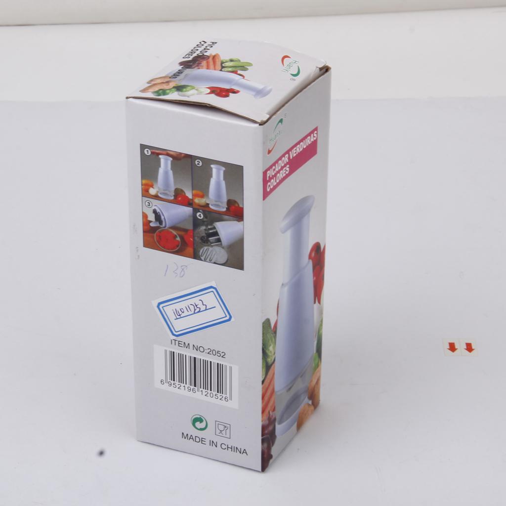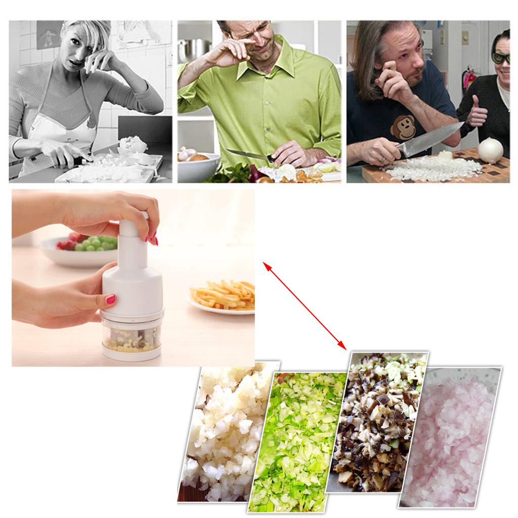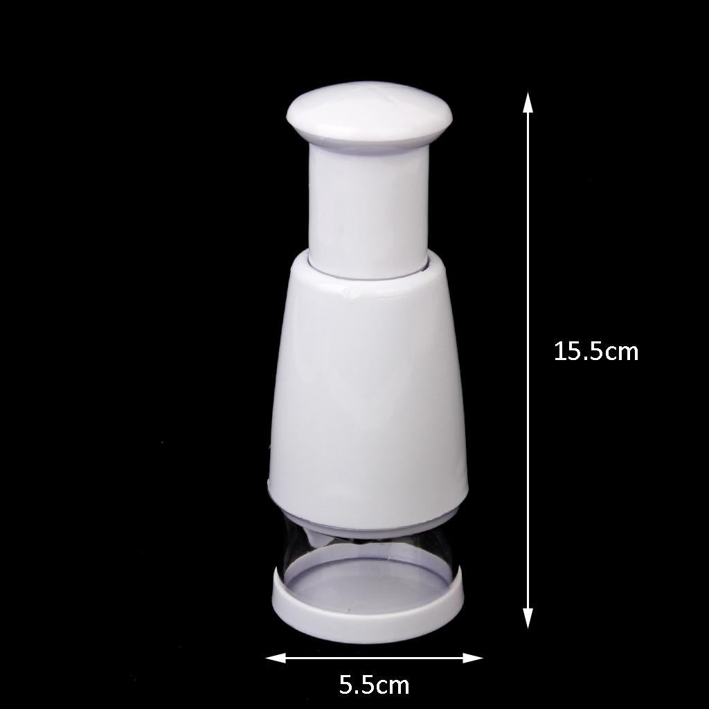 • Usage: Place onion/vegetable inside the chopping plate or on the chopping board; strike down the button with the palm of your hand. More you hit finer the food are minced
