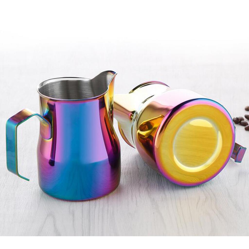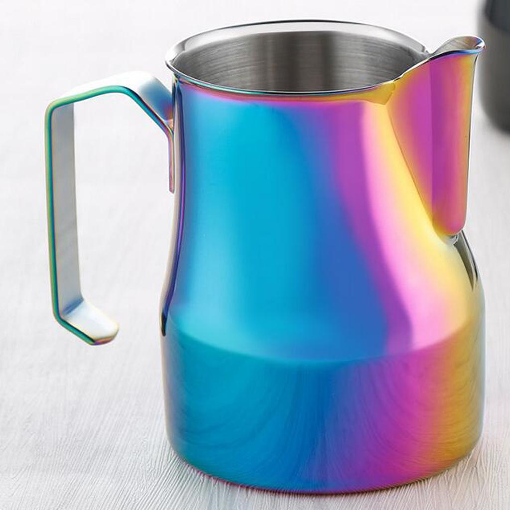Stainless Steel Coffee Frothing Milk Jug Pull Flower Cylinder Cup 750ml Colorful