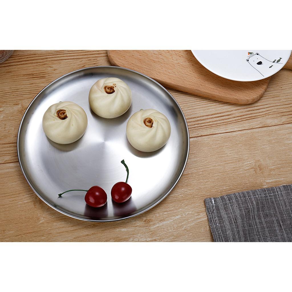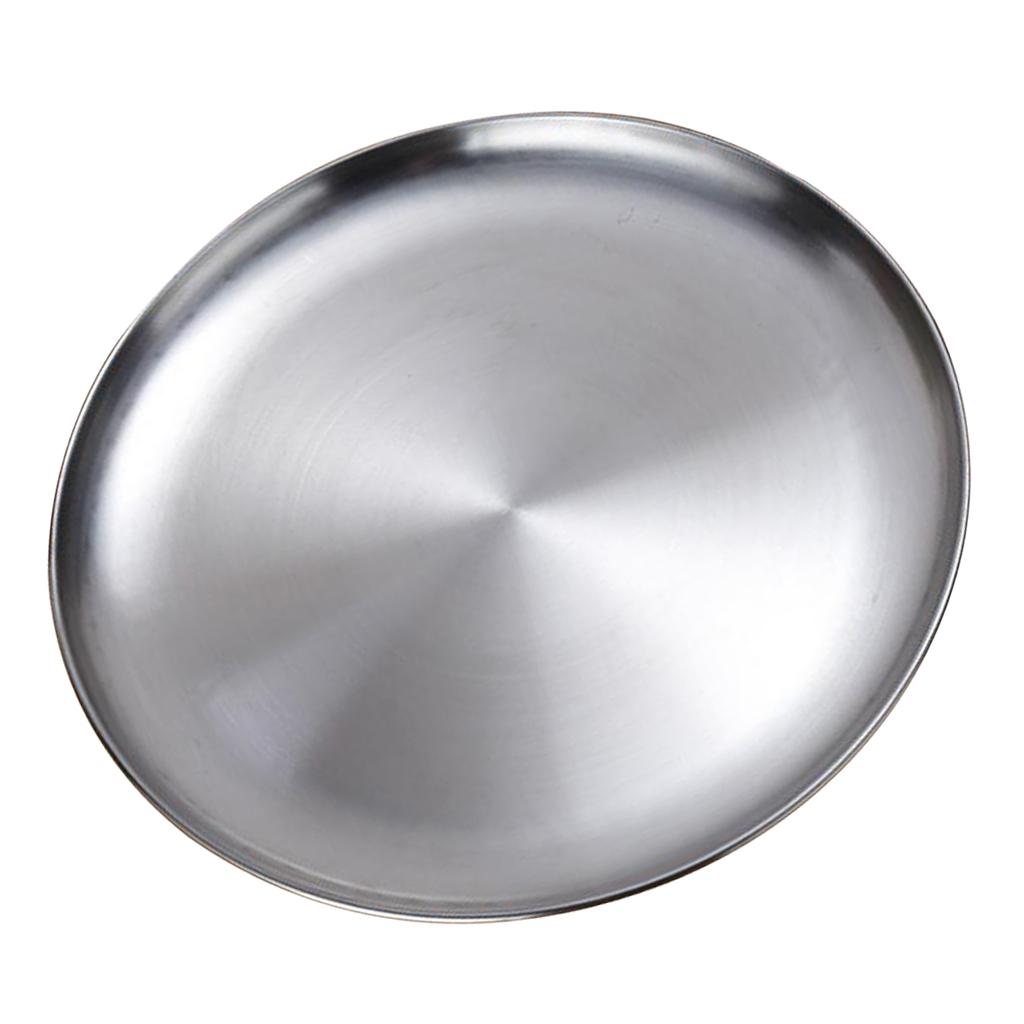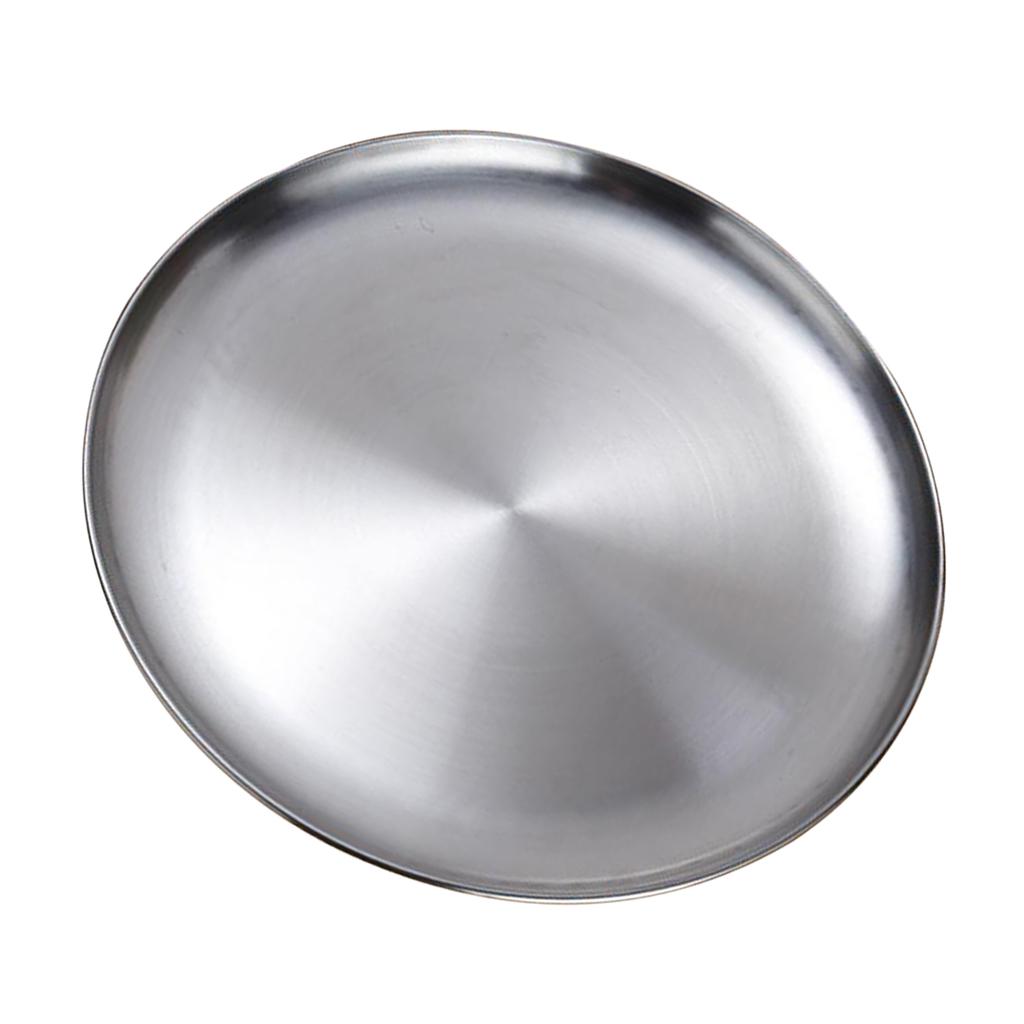 Stainless Steel Dinner Plate Round Camping Picnic Serving Tray Silver 23cm