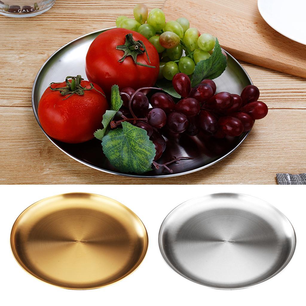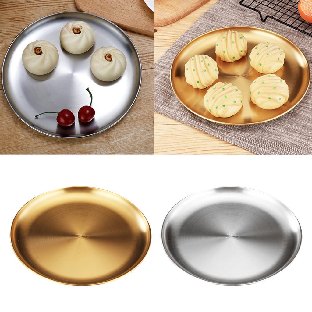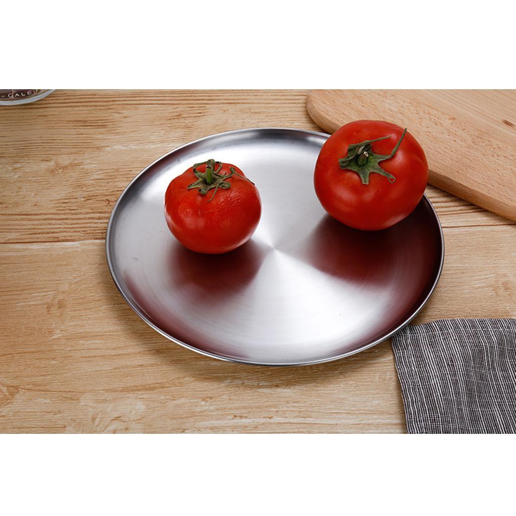 Stainless Steel Dinner Plate Round Camping Picnic Serving Tray Silver 23cm