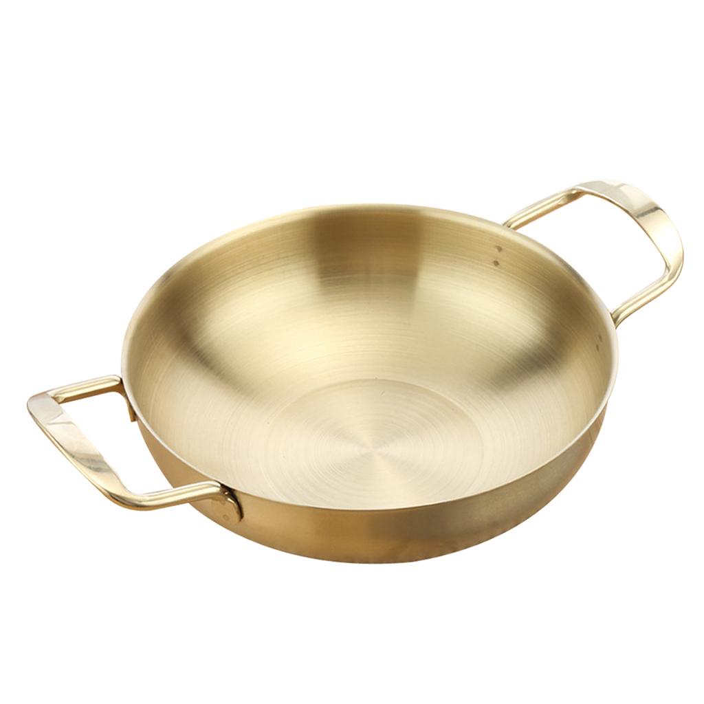 Stainless Steel Paella Pan Gratin Pan Soup Stock Pot Cookware Golden 22cm