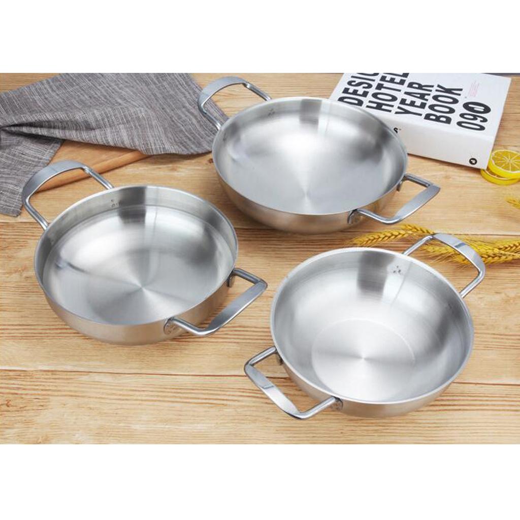 Stainless Steel Paella Pan Gratin Pan Soup Stock Pot Cookware Silver 20cm