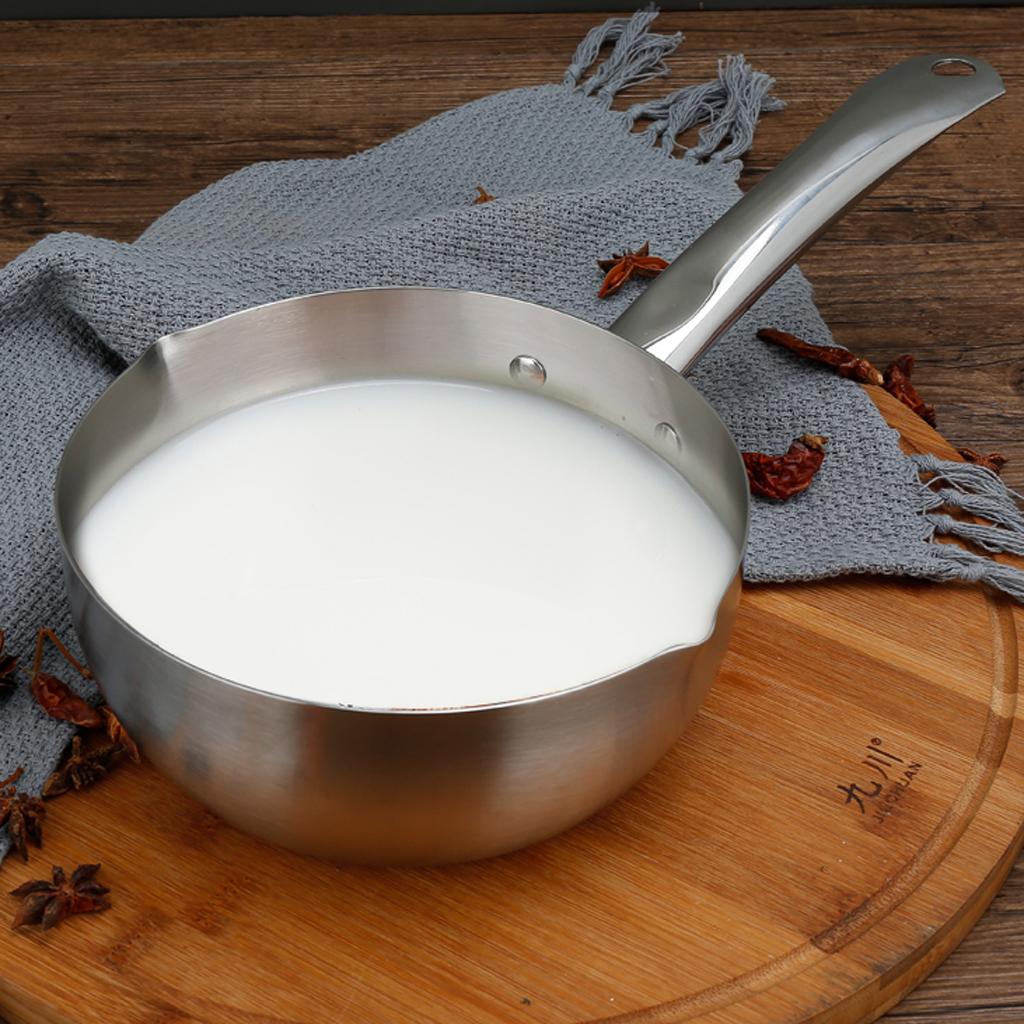 This stainless steel milk pot can easily pour out milk, porridge or sauce soup.