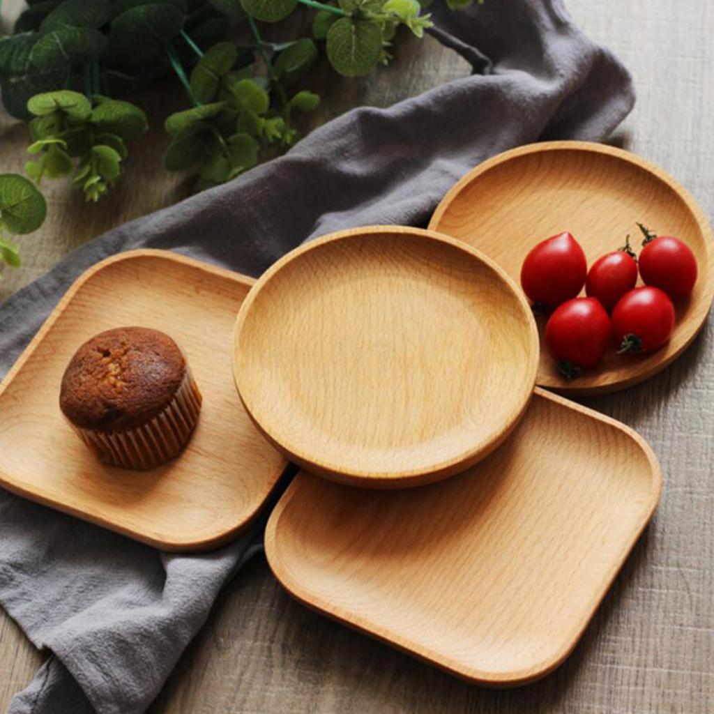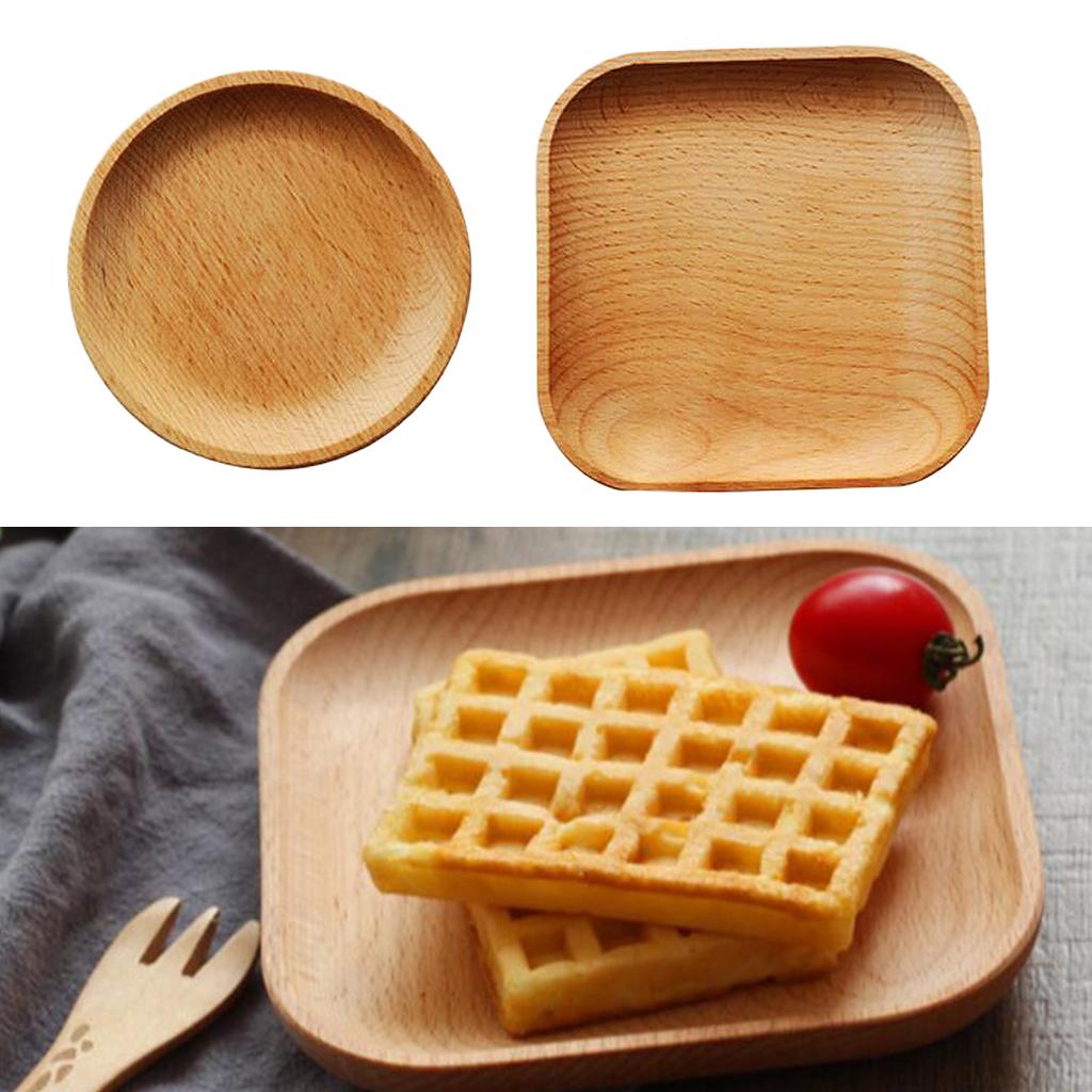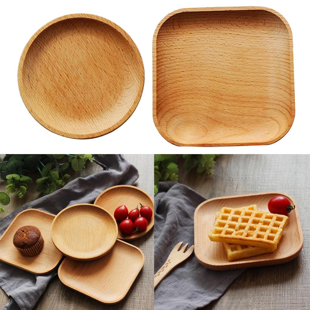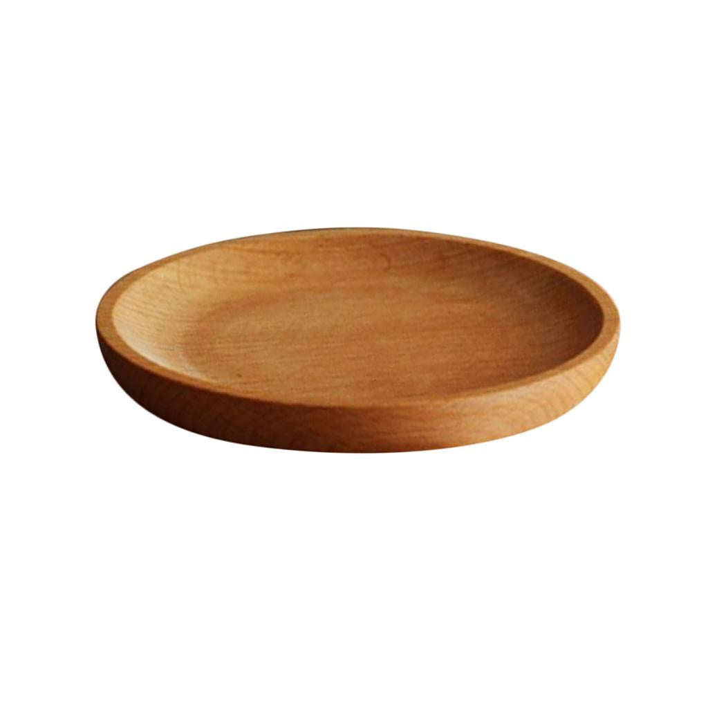 Tea Serving Tray Food Dish Fruit Platter Dessert Wood Breakfast Plate Round
