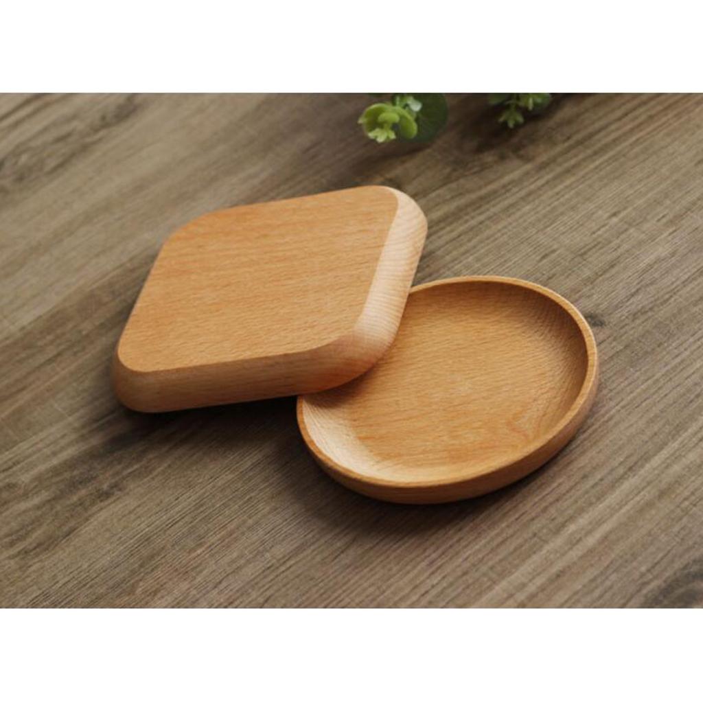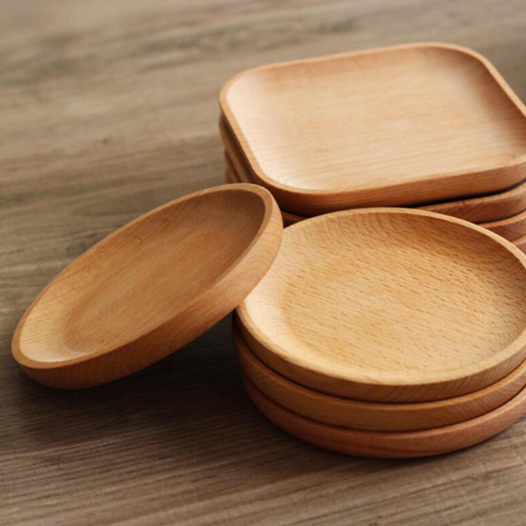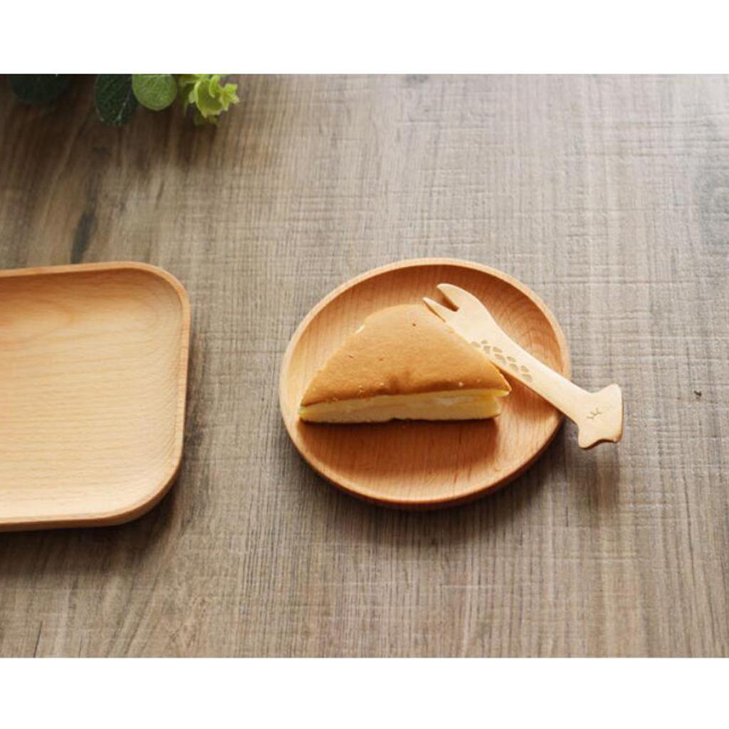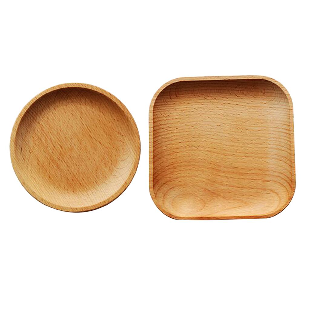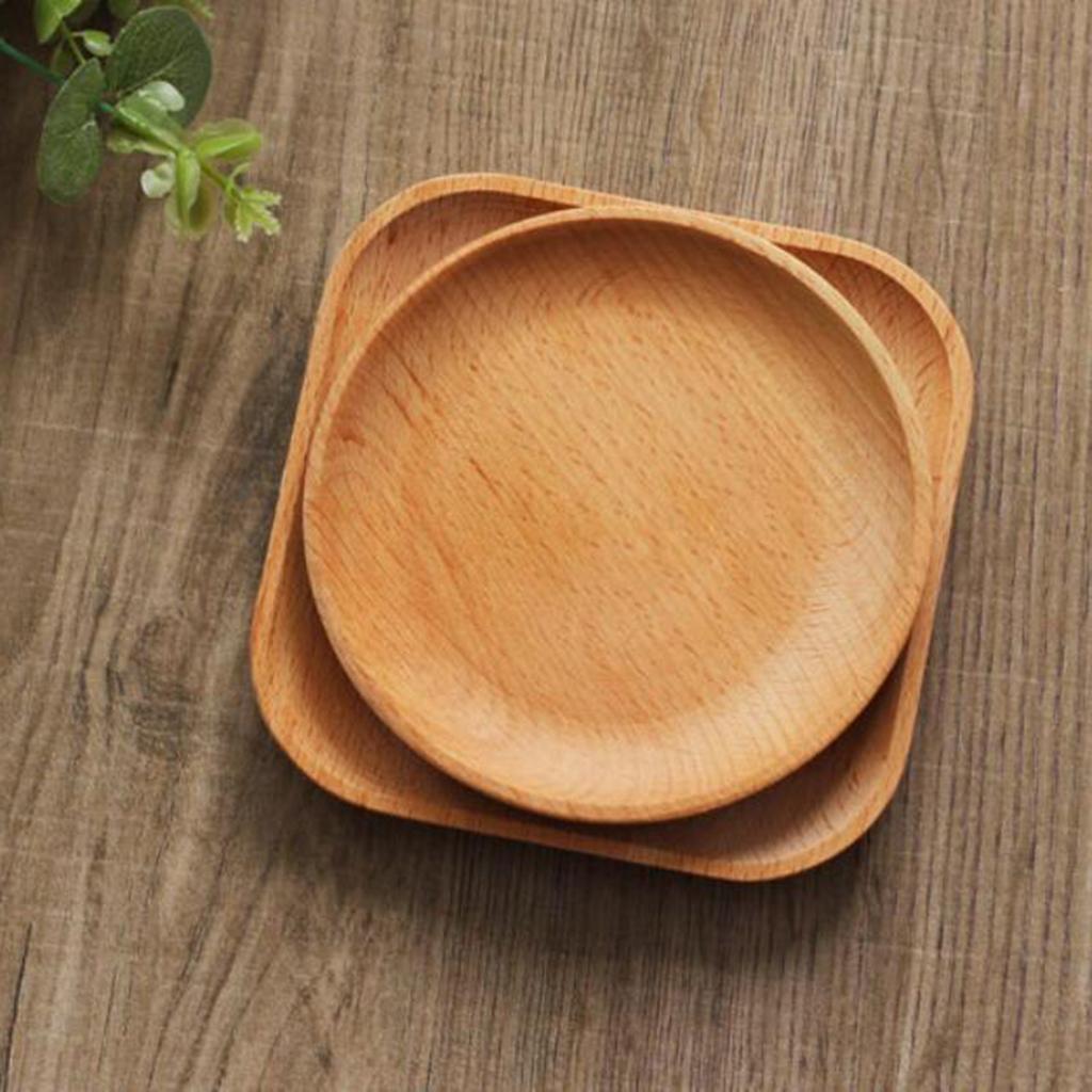 Tea Serving Tray Food Dish Fruit Platter Dessert Wood Breakfast Plate Round