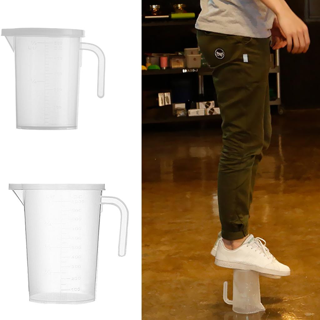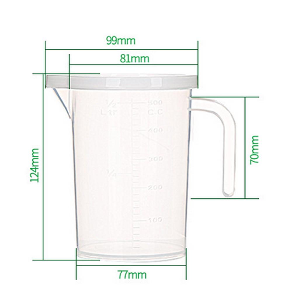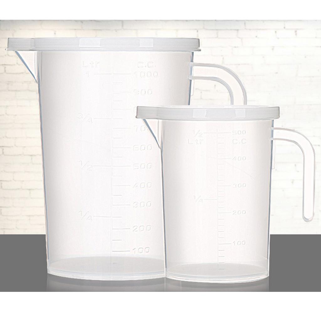 Transparent beaker with handle & lid for laboratory or kitchen use
