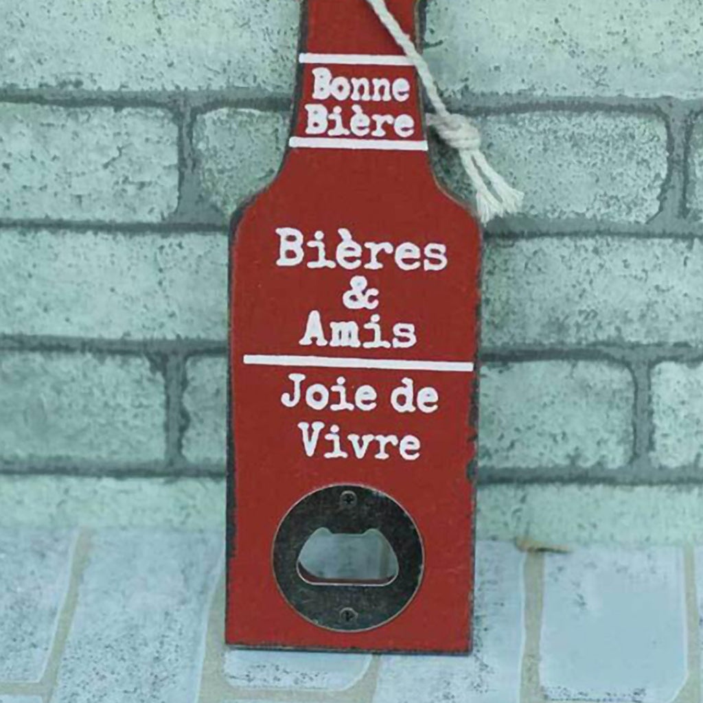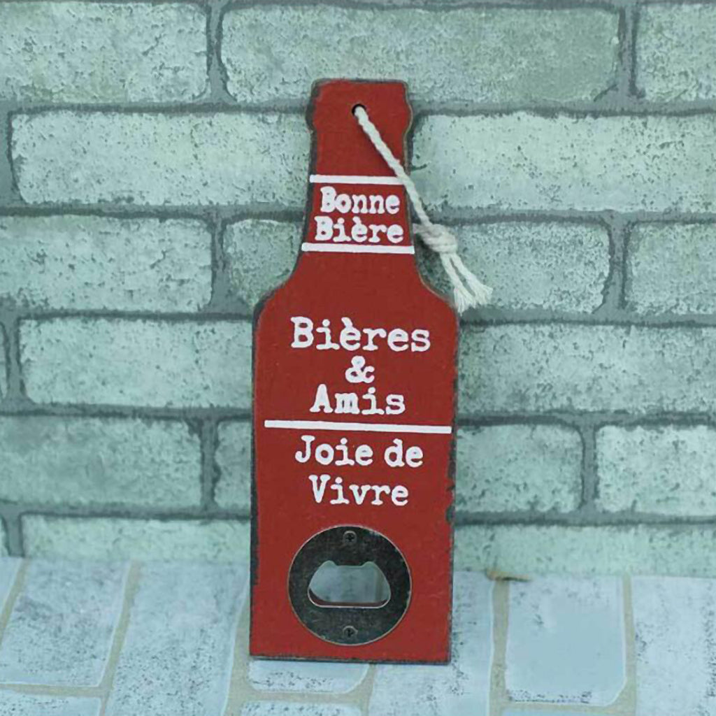 Vintage Wooden Multipurpose Beer Bottle Opener Wall Mounted Red Bieres