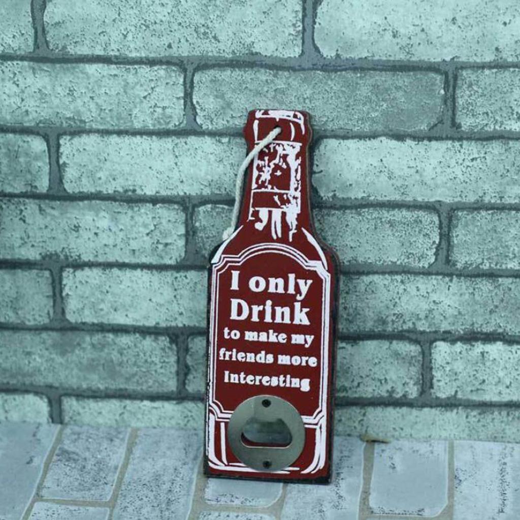 Vintage Wooden Multipurpose Beer Bottle Opener Wall Mounted Red Ionly