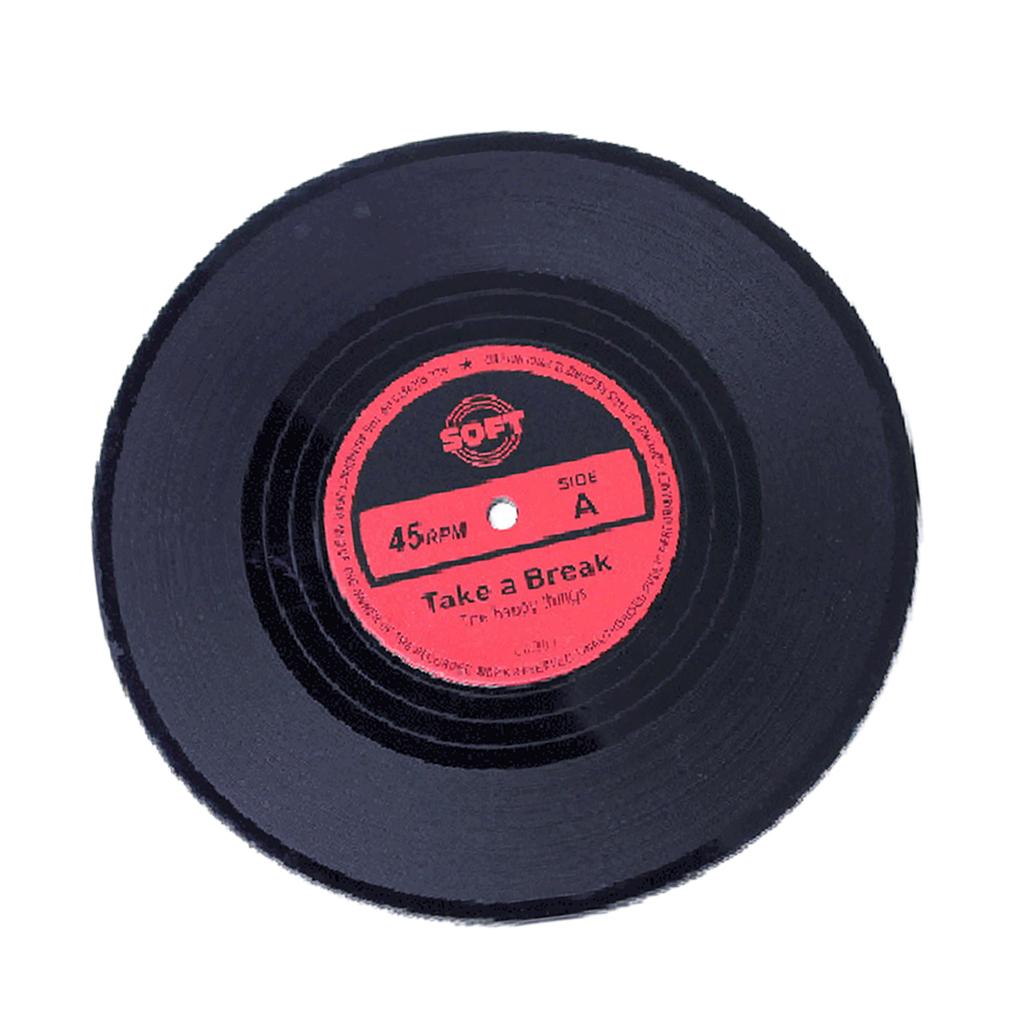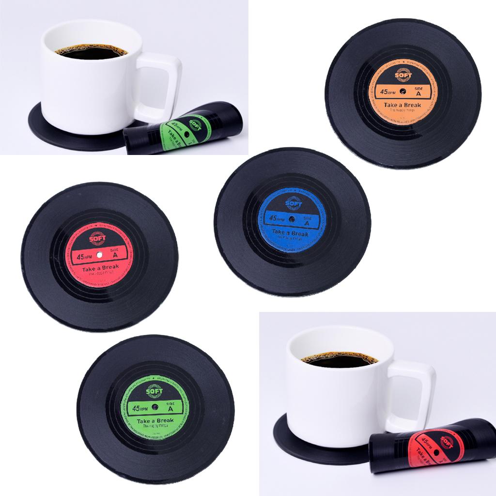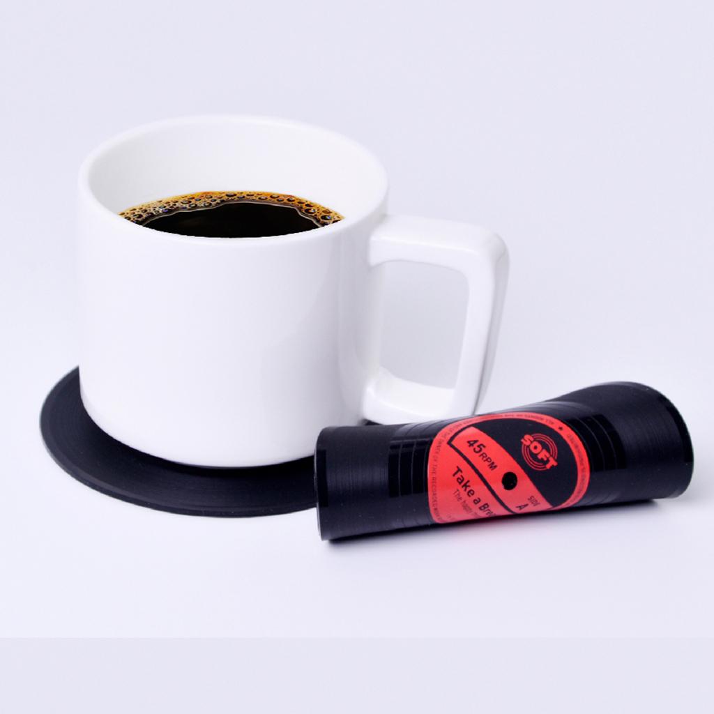 Vinyl Records Album Coaster Set CD Drink Mug Coffee Mat Black Music red