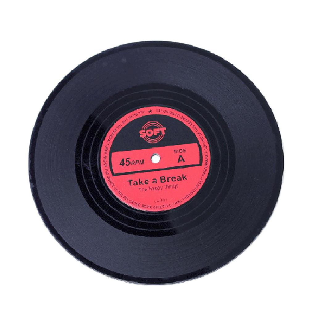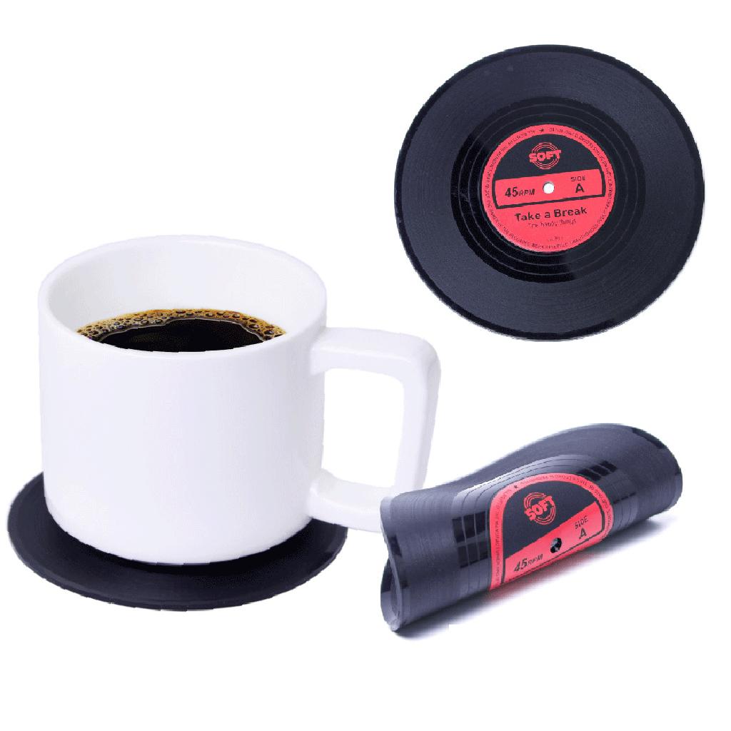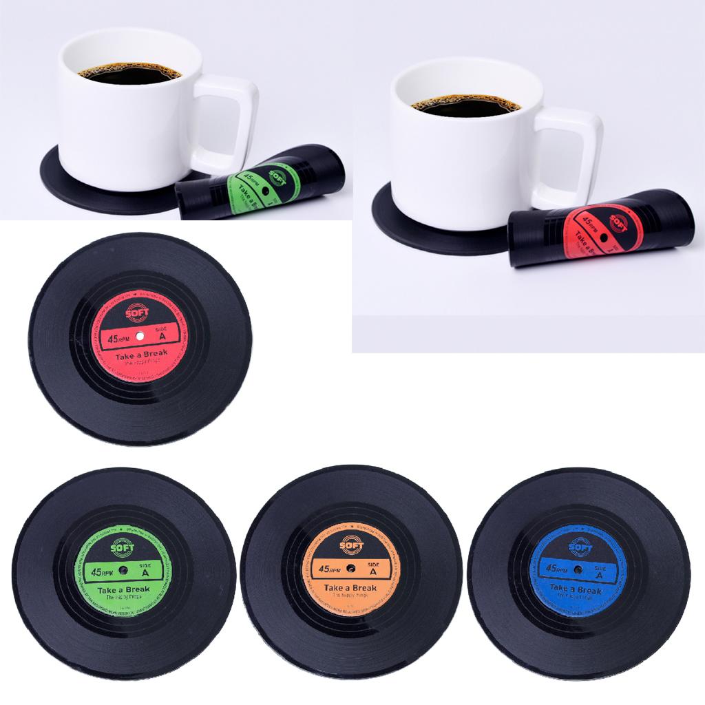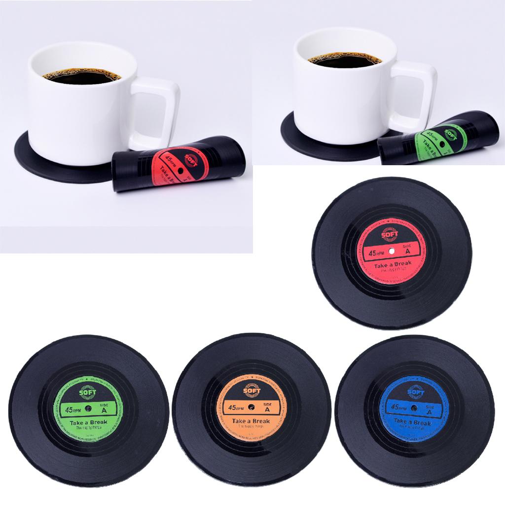 Vinyl Records Album Coaster Set CD Drink Mug Coffee Mat Black Music red