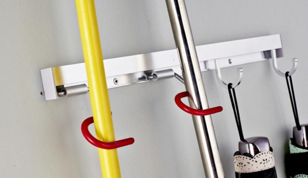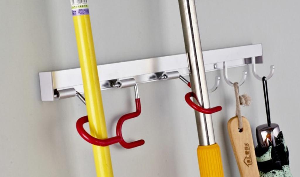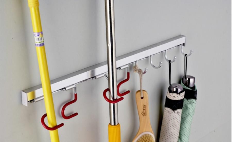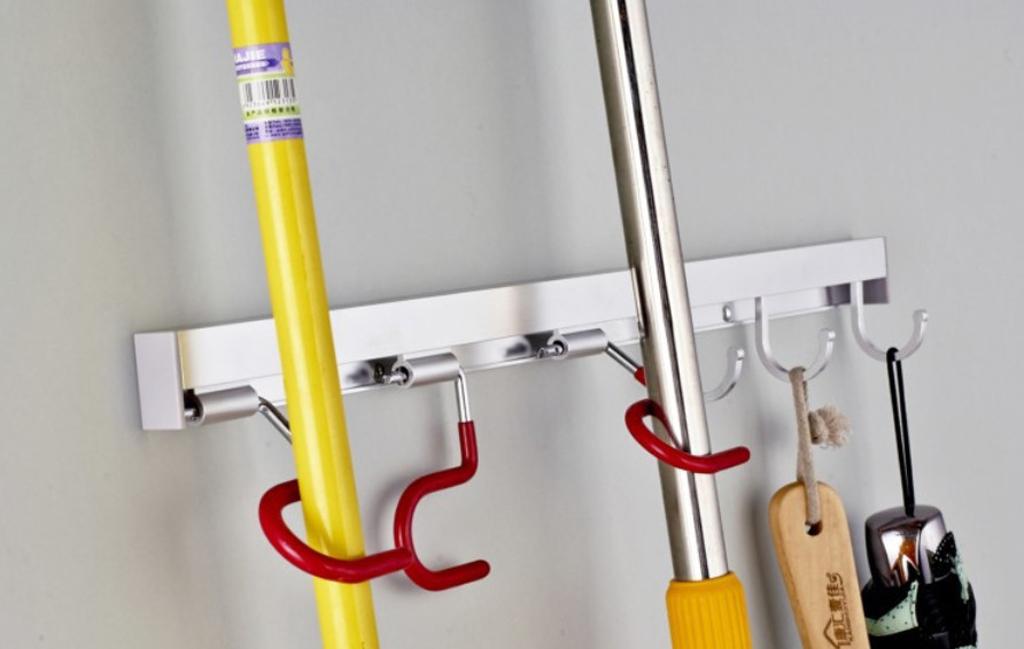 Wall Mounted Mop Brush Broom Organizer Holder Hanger Storage Rack 6 Hooks