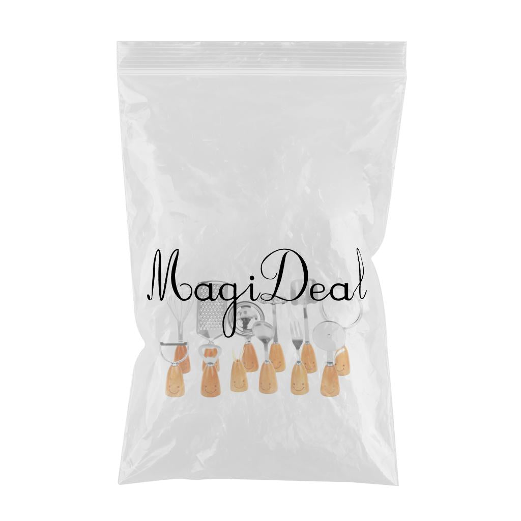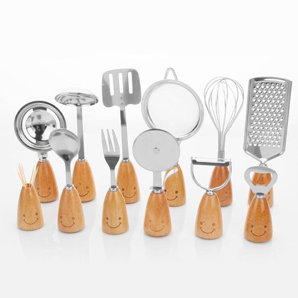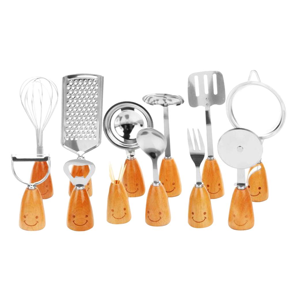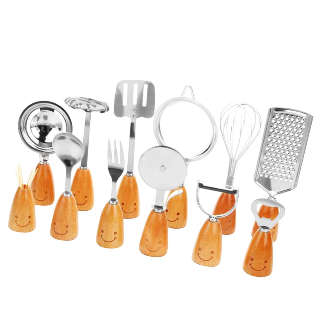 Includes: Egg divider, Dinner spoon, peelers, Flour Sieve, Ladle, Fruit fork, Bottle opener, Egg beater, Pizza Cutter, Grater, toothpick holder, Slotted Turner