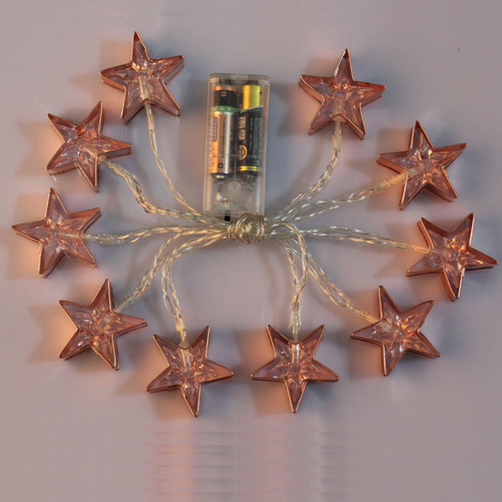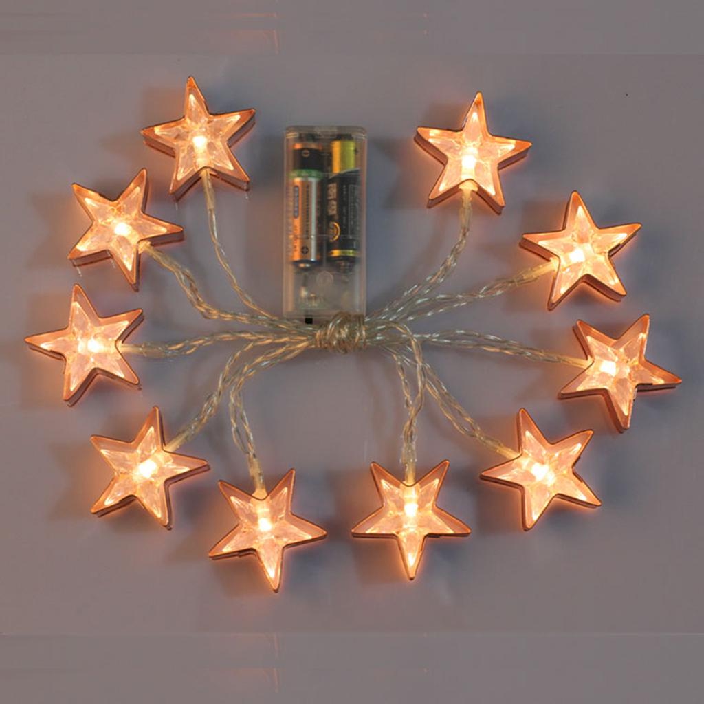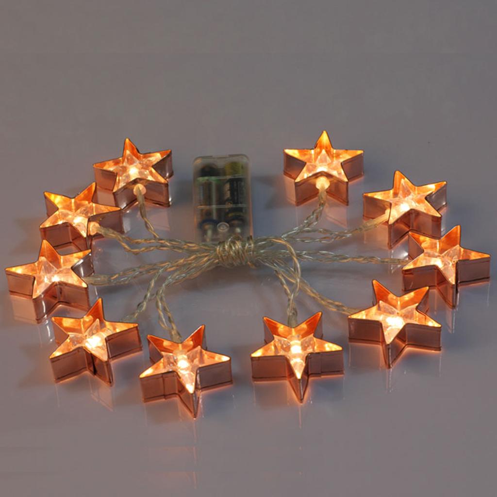 165cm/5.4feet Battery Operated Metal Star Design Decoration Light Wedding Home Party Bar Fairy String Light Rope String Lamp, Warm White