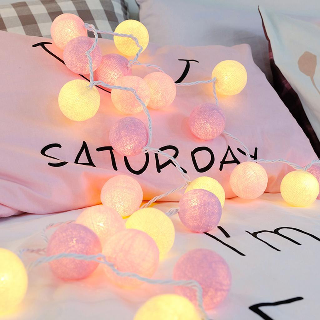 2.6m 20 Cotton Balls String Fairy Mood Night Light Christmas Party Decor