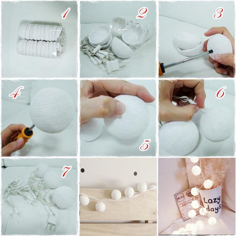 • Beautiful Handmade cotton ball string lights fairy lights for unique decoration your home decor, bedroom, baby nursery room, patio, garden or your special party such as Christmas wedding and birthday party.