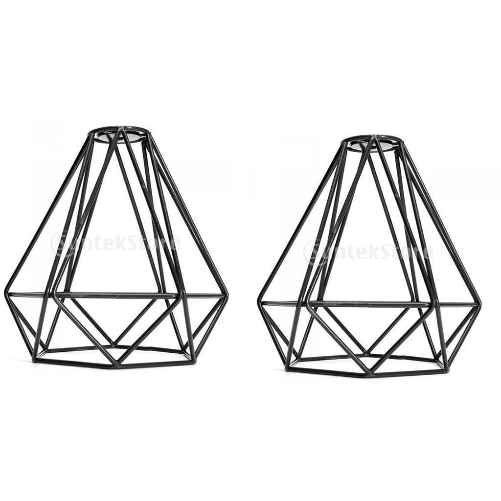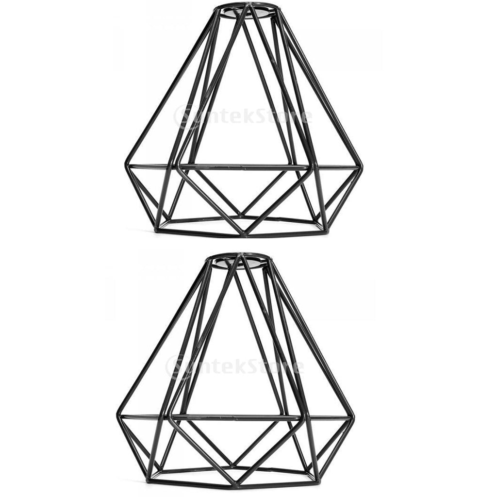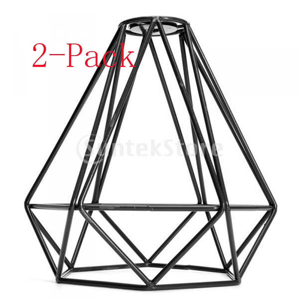 2-Pack Retro Wire Diamond Pendant Dining,Kitchen, Living, Ceiling Light Cage Lamp Shade, Black