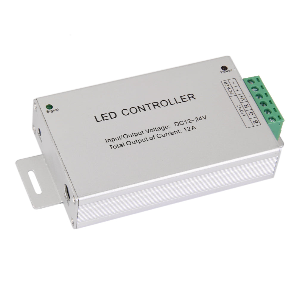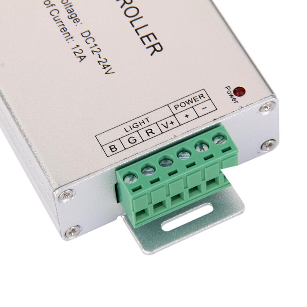 20-key RF controller adopts the advanced micro control unit, it is used for controlling a variety of lamp whose source of light is LED. For instance, point source of light, flexible light strip, wall washer lamp, glass curtain wall light and so on; it has many advantages such as low price, easy connection and simplicity to use. Meanwhile, you could adjust brightness, static color choices and various dynamic changes in lighting effects through wireless remote control. And according to the actual need of customers, it can carry out jumpy changing, gradual changing, strobe flash and other effects of change.