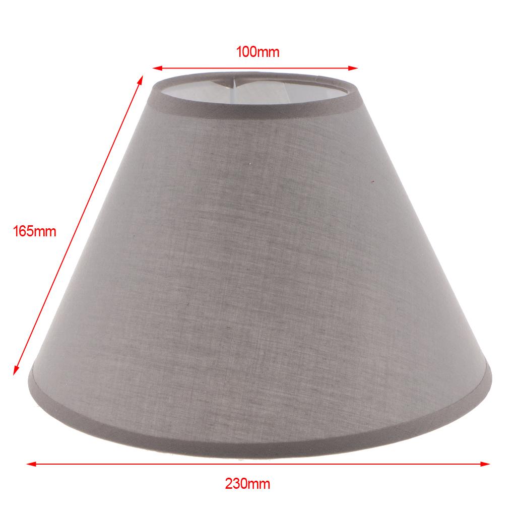 Material: Fabric, Upper Diameter: Approx. 10cm / 3.94inch, Lower Diameter: Approx. 23cm / 9.06inch, Slant Height: Approx. 16.5cm / 6.50inch, Applicable Lamp Holder: E27