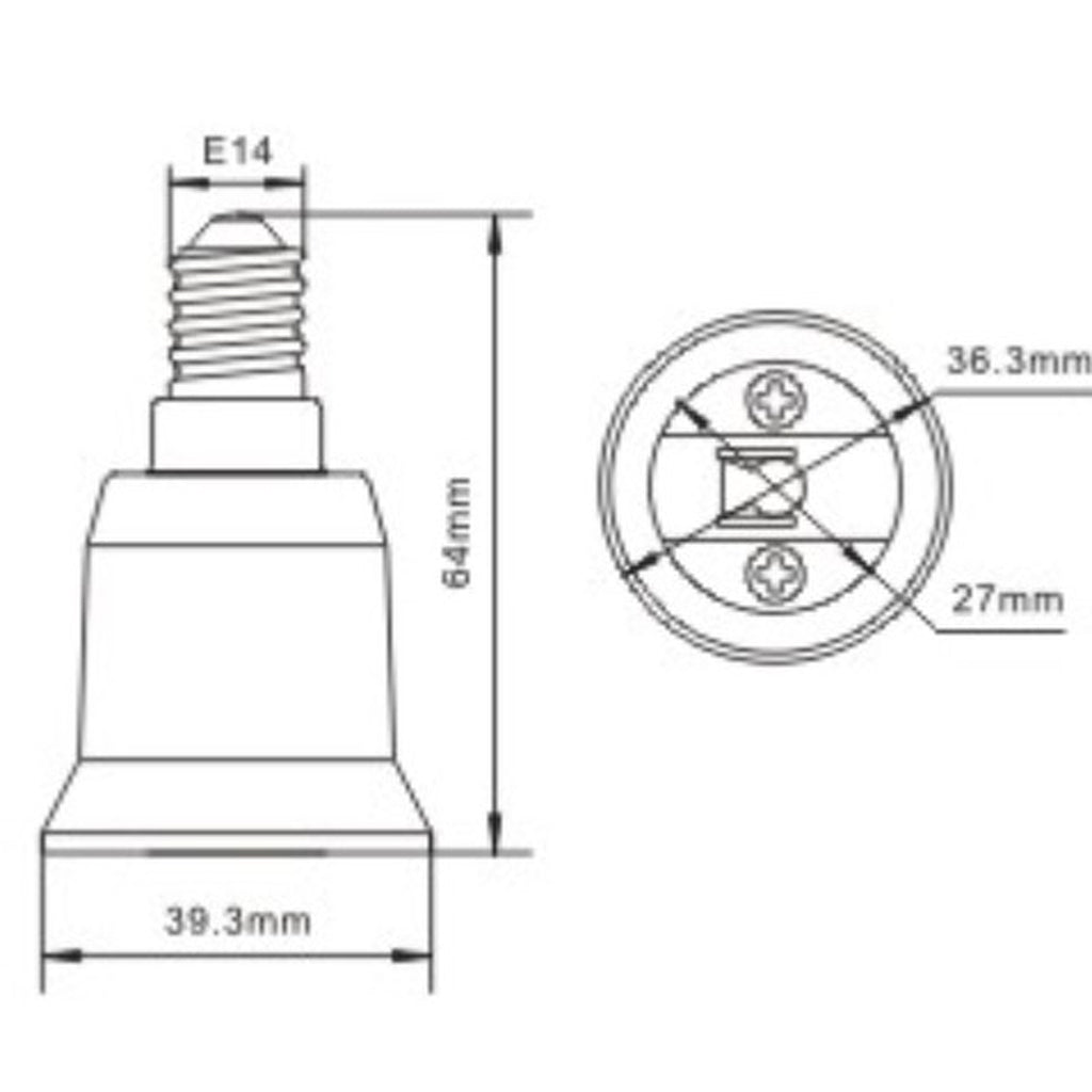 E14 to E27 Size: Approx. 64x40x40mm/2.52x1.57x1.57 inch