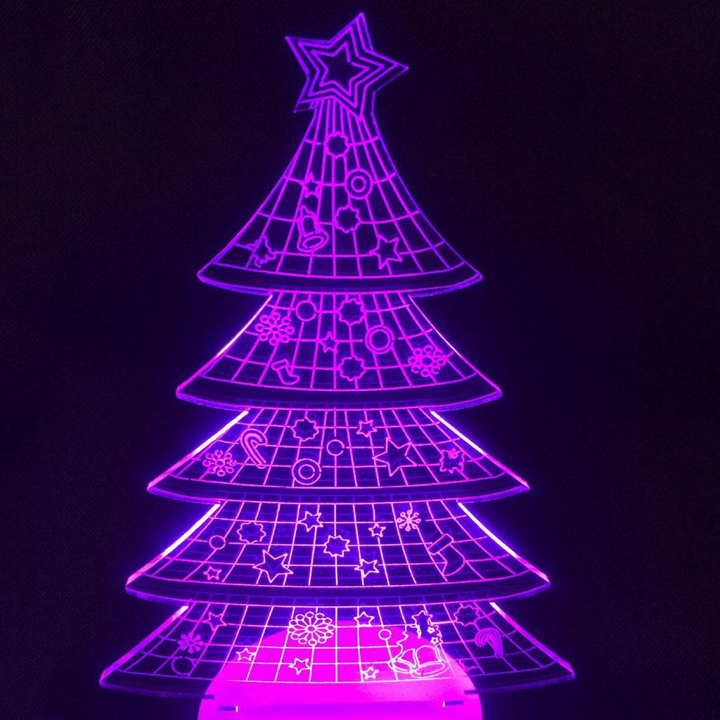 LED 3D Illuminated Xmas Tree Illusion Light Micro USB Lamp 7 Color Change