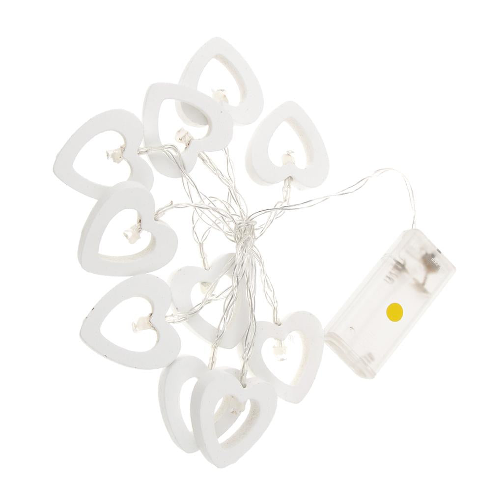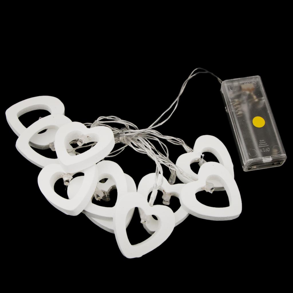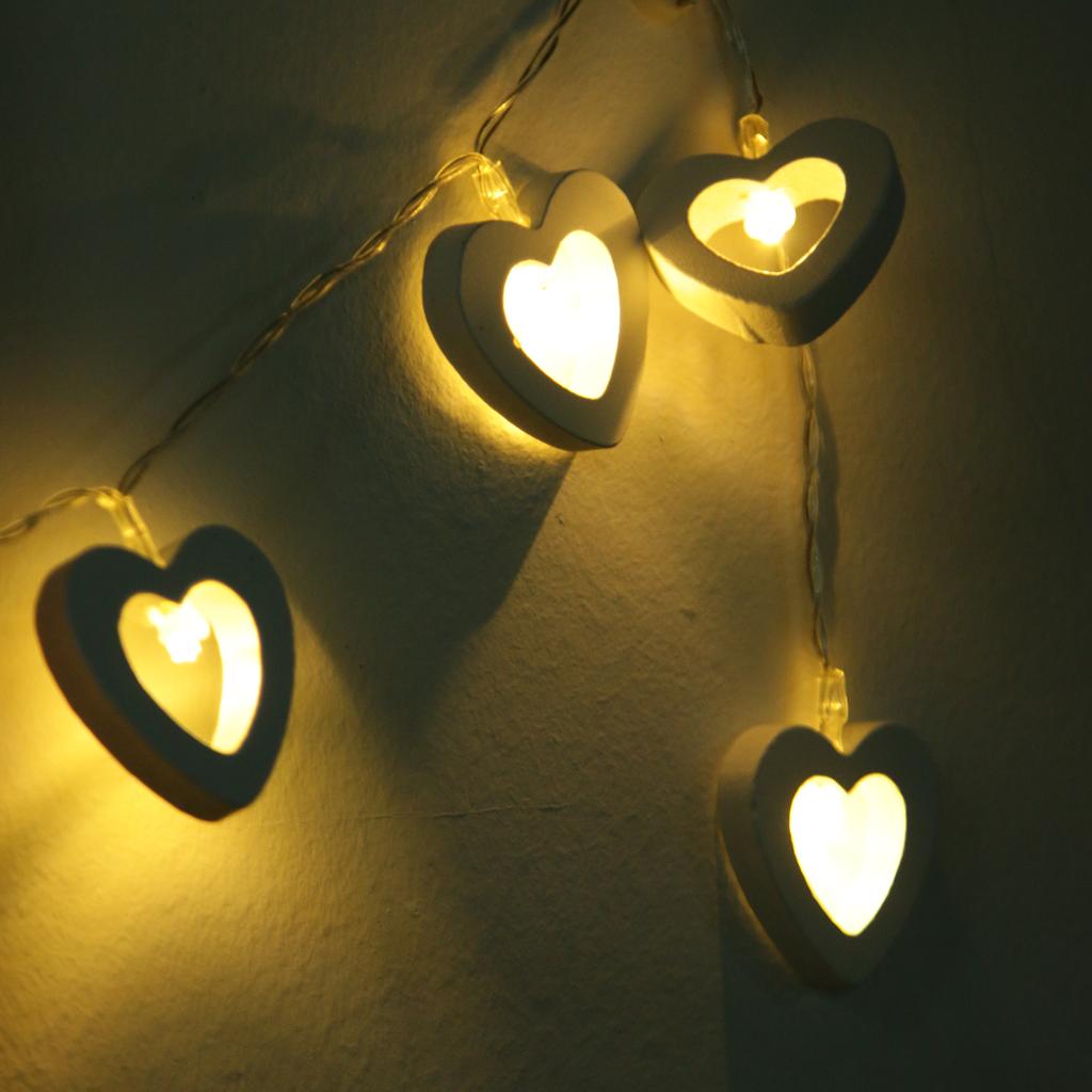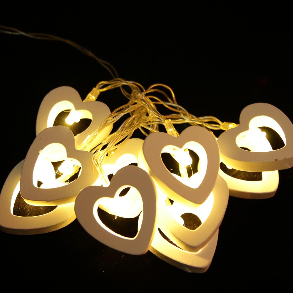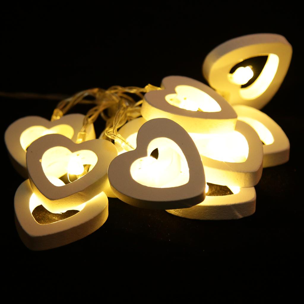 Romantic Wood Heart Shape Battery 10 Bulbs Operated Wire String Fairy Lights