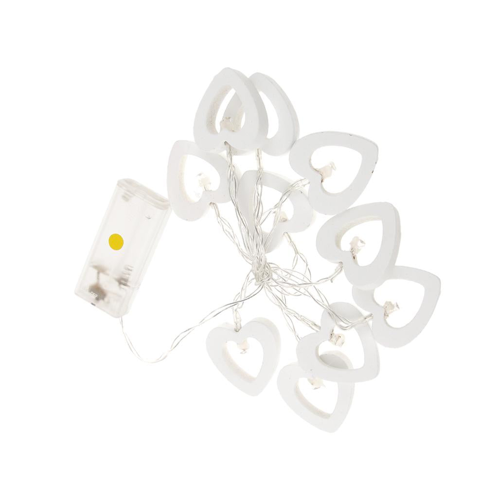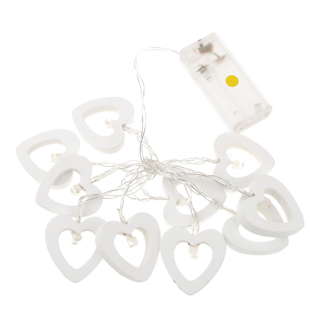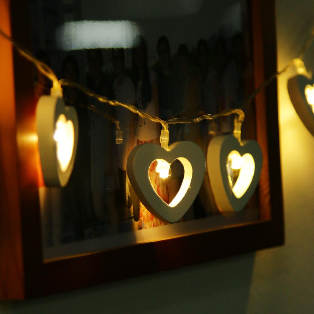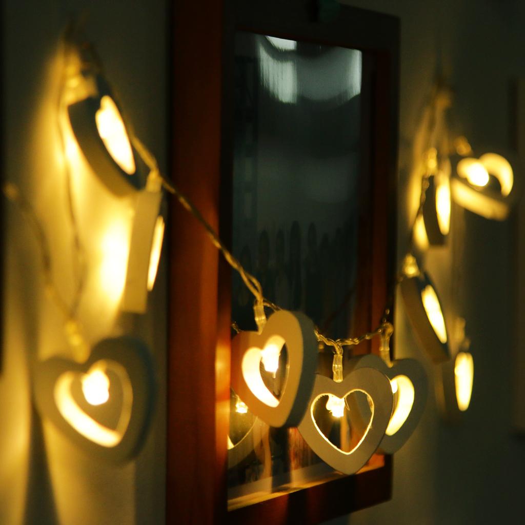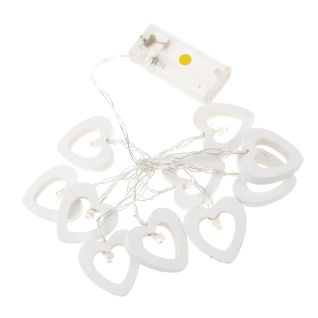 Romantic Wood Heart Shape Battery 10 Bulbs Operated Wire String Fairy Lights